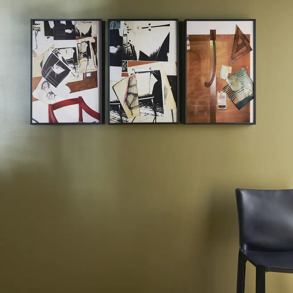 This work is part of Casestudio project, which takes us inside the studios of some of the best-renowned designers through the lenses of the photographer. With its sensitive and reflective gaze, Capuano’s work can help to detect what is in front of our eyes but is often unrecognizable, placing the spectator in the condition of a privileged observer. This is Magistretti’s studio with sketches of his works. This is a limited edition of seven. Frame not included.