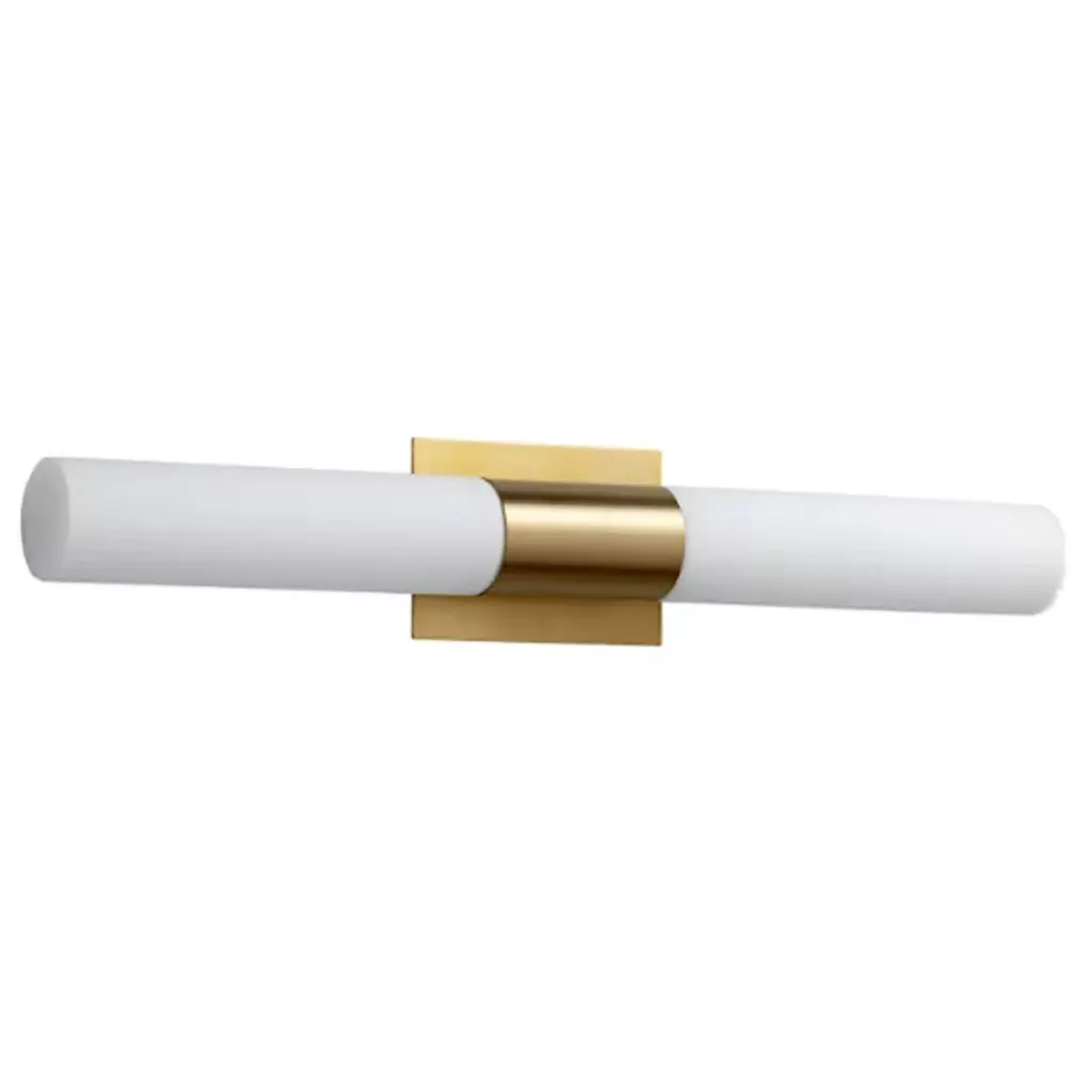 The Magneta LED Vanity Light by Oxygen Lighting is a contemporary piece with a sleek composition. Vertically or horizontally installed, this minimalistic addition to interior spaces is anchored by a simple aluminum backplate as a wide metal band holds a matte opal glass cylinder. Bringing an evenly diffused layer of illumination to your home, this bath bar is an elegant blend of form and function that complements master and guest bathroom spaces alike.