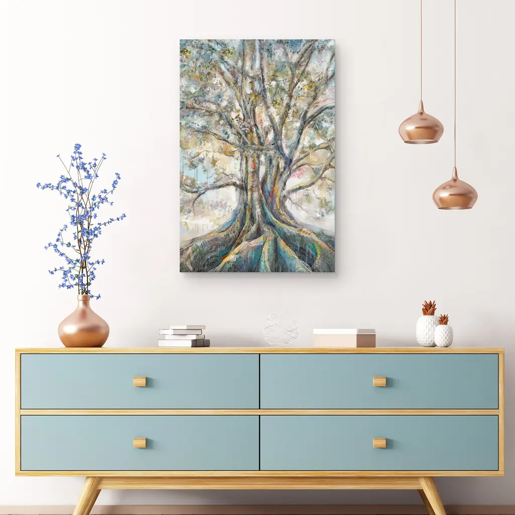 Branches weave and twist together, frozen in a neverending embrace in this technicolor canvas print. Unexpected streaks of pastel color add to the piece's dreamy quality, enhancing its ethereal charm. Perfect for home and office use, this print brings a little magic to any room. Made with superior materials using state-of-the-art printing technology, our giclee canvas prints are complete with exceptional detail. Produced with full-bleed printing that offers edge to edge coverage, your new artwork comes ready to hang; eliminating the need for framing.