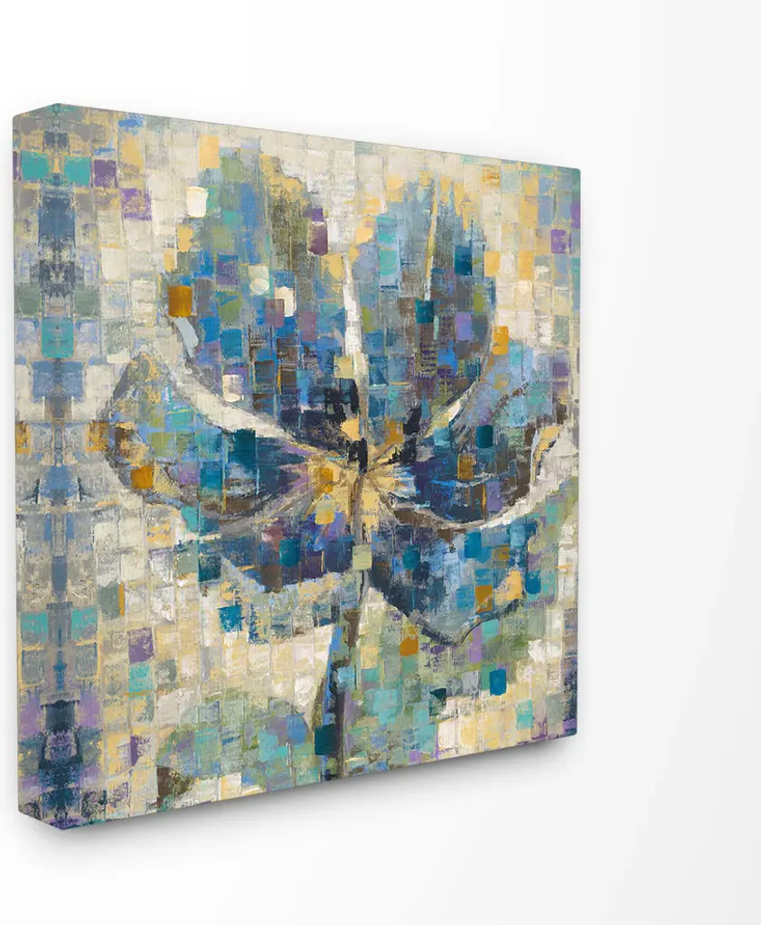 Magnolia Grid Squares Stretched Canvas Wall Art, 17x17