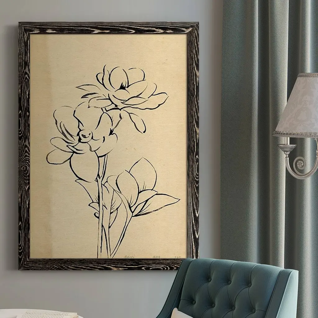 Magnolia Sketch Ii-Premium Framed Canvas - Ready To Hang - 31.5x43.5 - Grey