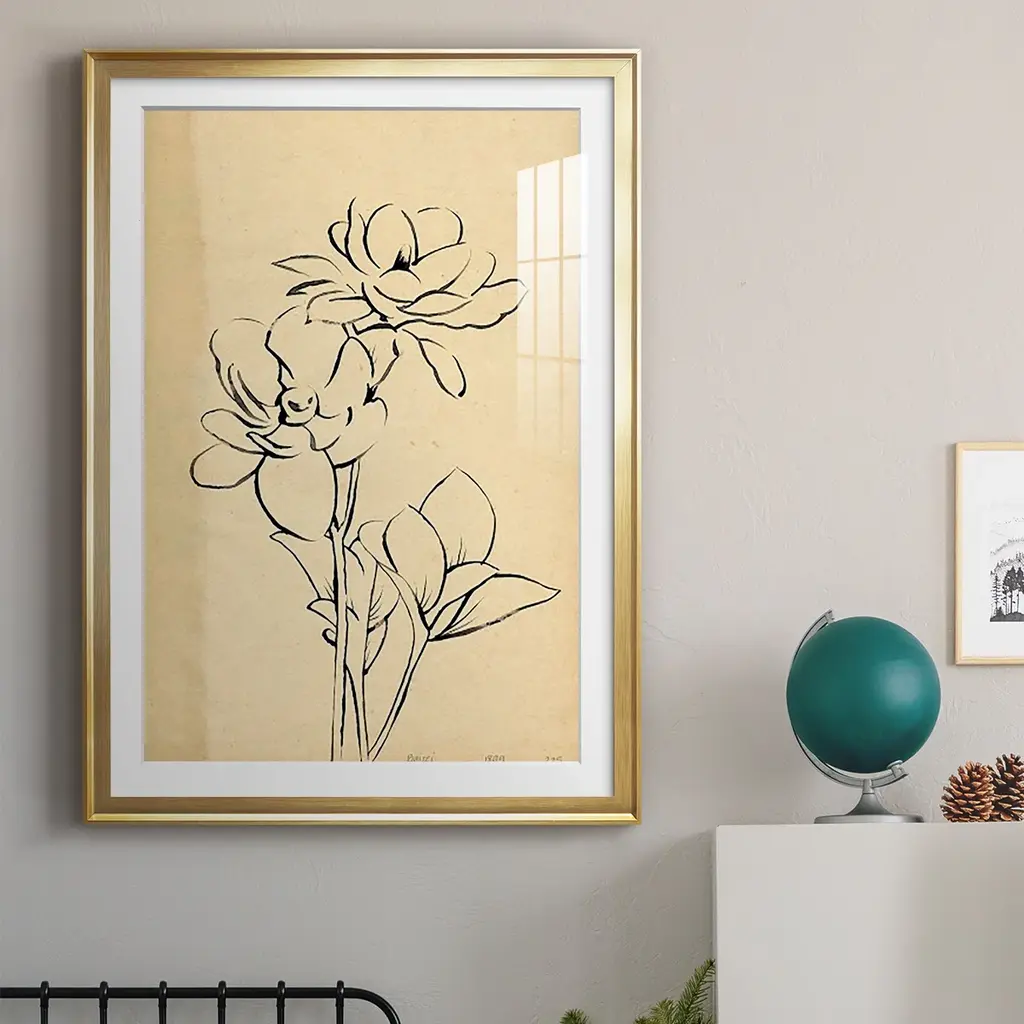 Magnolia Sketch II Premium Framed Print - Ready to Hang A Premium Framed Print created to last. Framed in distressed wood and available in an array of sizes and colors Featuring a beveled a solid wood stretcher bar, each piece comes ready to hand 4 SIZES AVAILABLE 30.5''X42.5'' - Overall Size 26.5'X36.5'' - Overall Size 22.5''x30.5'' - Overall Size 18.5''x24.5'' - Overall Size Each piece is made to order. Each piece comes with hanging hardware. Made in the USA Ready to Hang Giclee Paper Print Acrylic Glass Beveled Matt Board