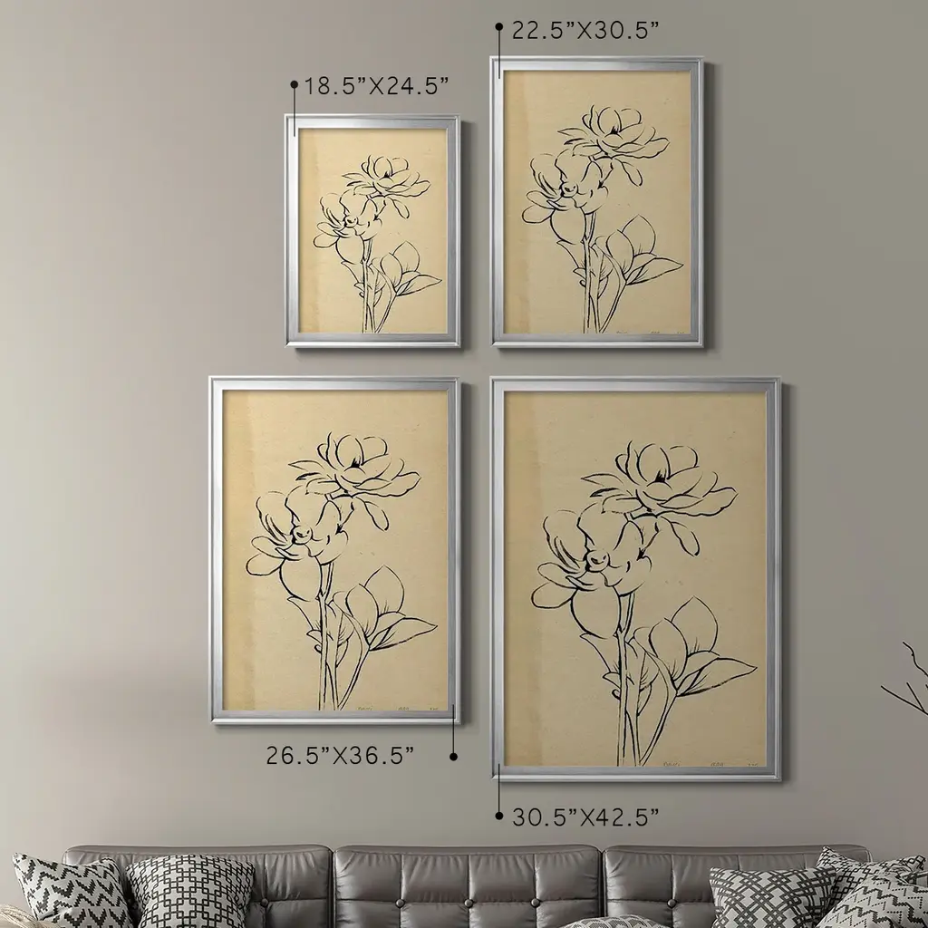 Magnolia Sketch II Premium Framed Print - Ready to Hang A Premium Framed Print created to last. Framed in distressed wood and available in an array of sizes and colors Featuring a beveled a solid wood stretcher bar, each piece comes ready to hand 4 SIZES AVAILABLE 30.5''X42.5'' - Overall Size 26.5'X36.5'' - Overall Size 22.5''x30.5'' - Overall Size 18.5''x24.5'' - Overall Size Each piece is made to order. Each piece comes with hanging hardware. Made in the USA Ready to Hang