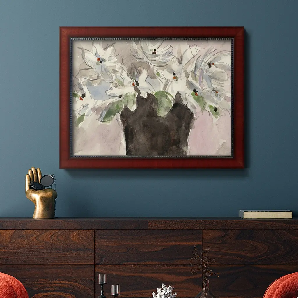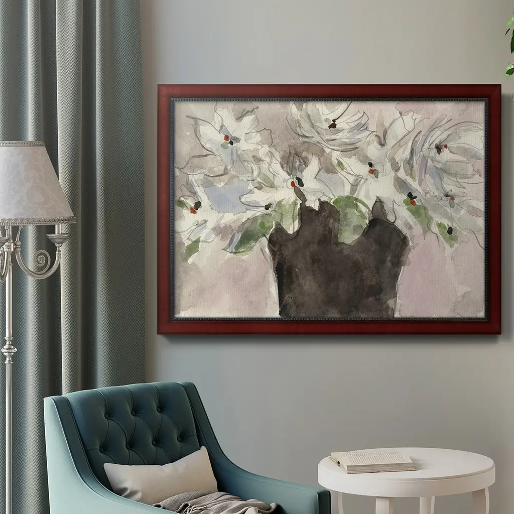Magnolia Watercolor Study II Premium Framed Canvas- Ready to Hang A Premium Framed Canvas created to last. Framed in distressed wood and available in an array of sizes and colors Featuring a beveled a solid wood stretcher bar, each piece comes ready to hand 3 SIZES AVAILABLE 16''X20'' - Overall Size 18'X27'' - Overall Size 24''x36'' - Overall Size Each piece is made to order. Each piece comes with hanging hardware. Made in the USA Ready to Hang Giclee Paper Print Acrylic Glass Beveled Matt Board