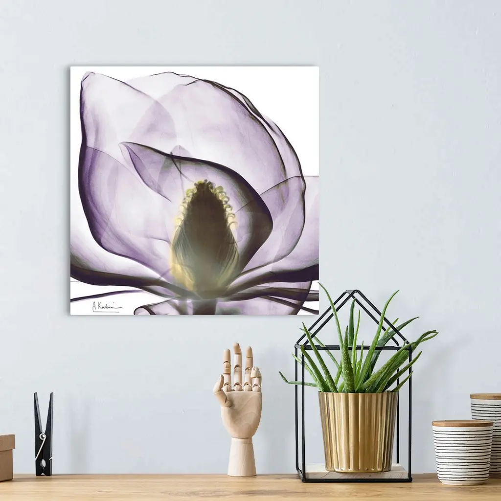 This square wall art is a close-up photograph of a flower blossom.