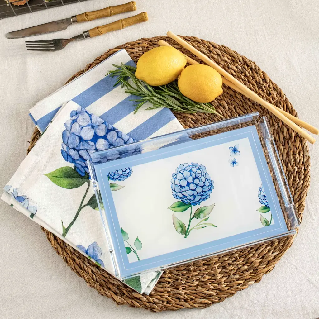 Mai small acrylic serving tray. Artwork on base.Eco-friendly UV topcoat.