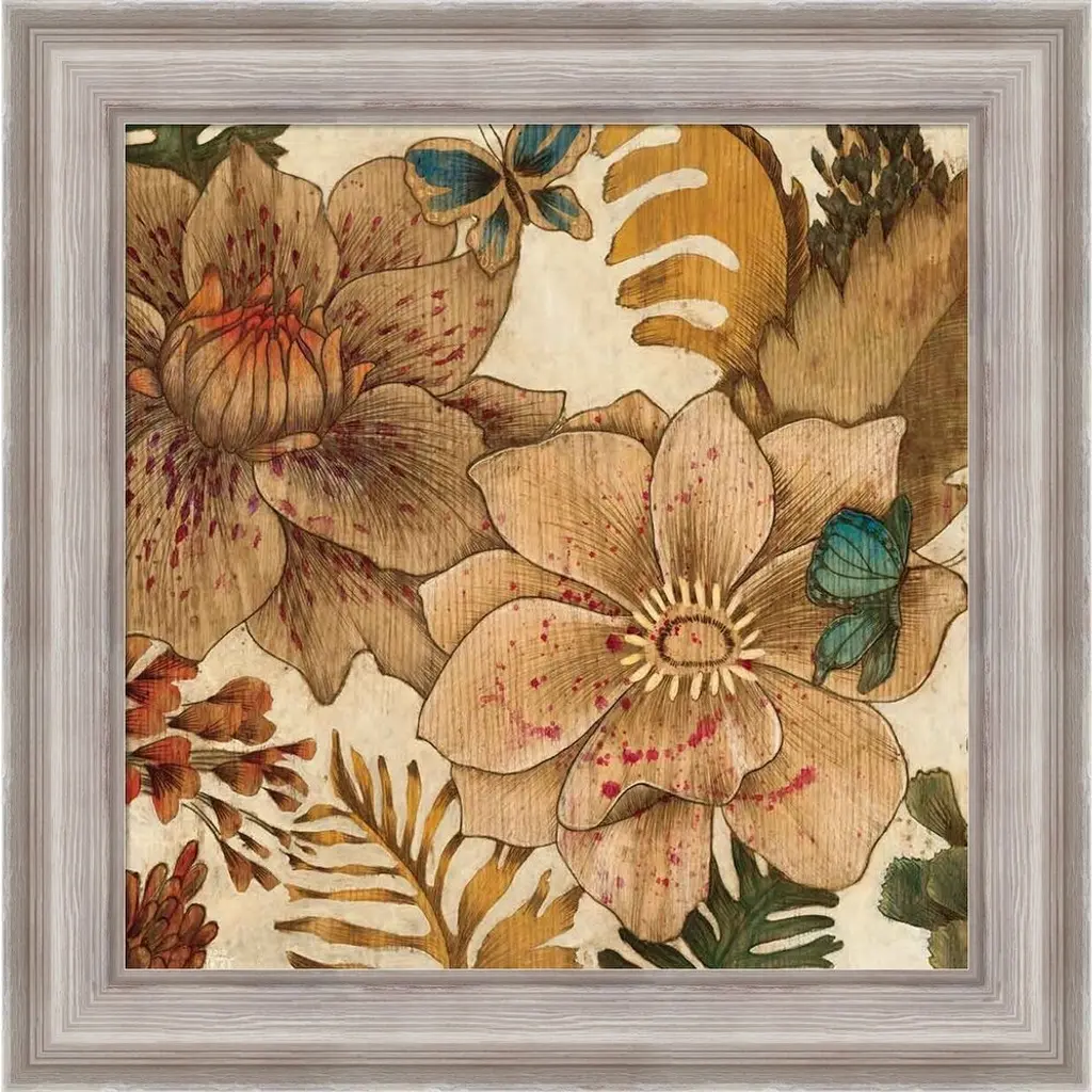 Fleurs De Bois by Maja is a high quality piece of framed artwork. The finished size of this piece is 20" X 20". It has a Weathered White Distressed frame and is finished with high quality Acrylic Plexiglass.. 100% Satisfaction Guaranteed.