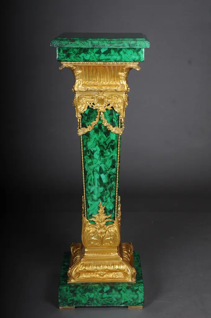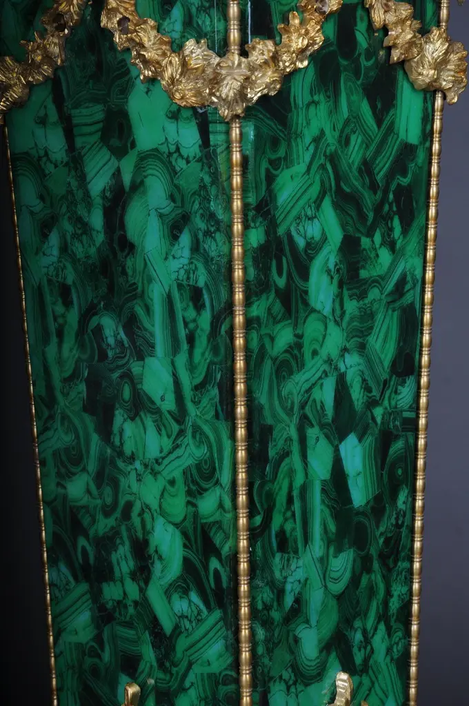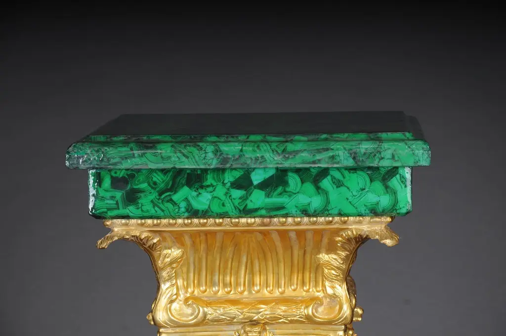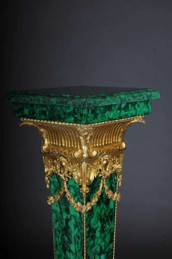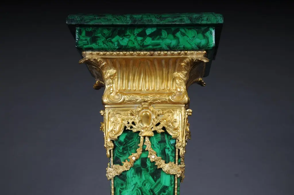 Majestic Marble Column with Malachite Bronze, Napoleon IIIImpressive and regal marble column with bronze fittings in Neo-Classicism style. Marble coated with malachite painting technique. Such a pillar is guaranteed to be a real eye-catcher and something very special.Mottle may vary slightly.