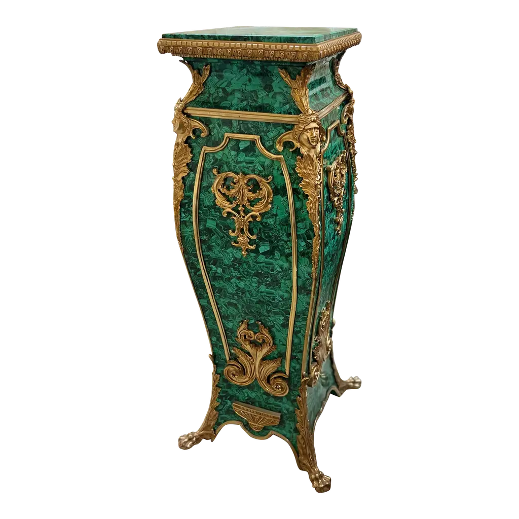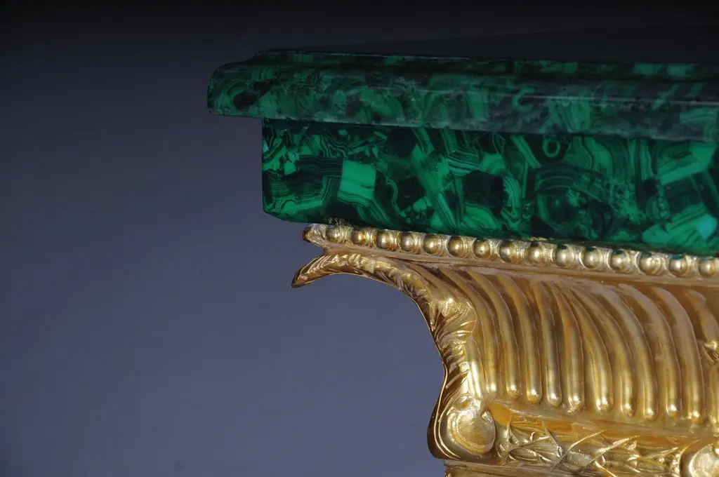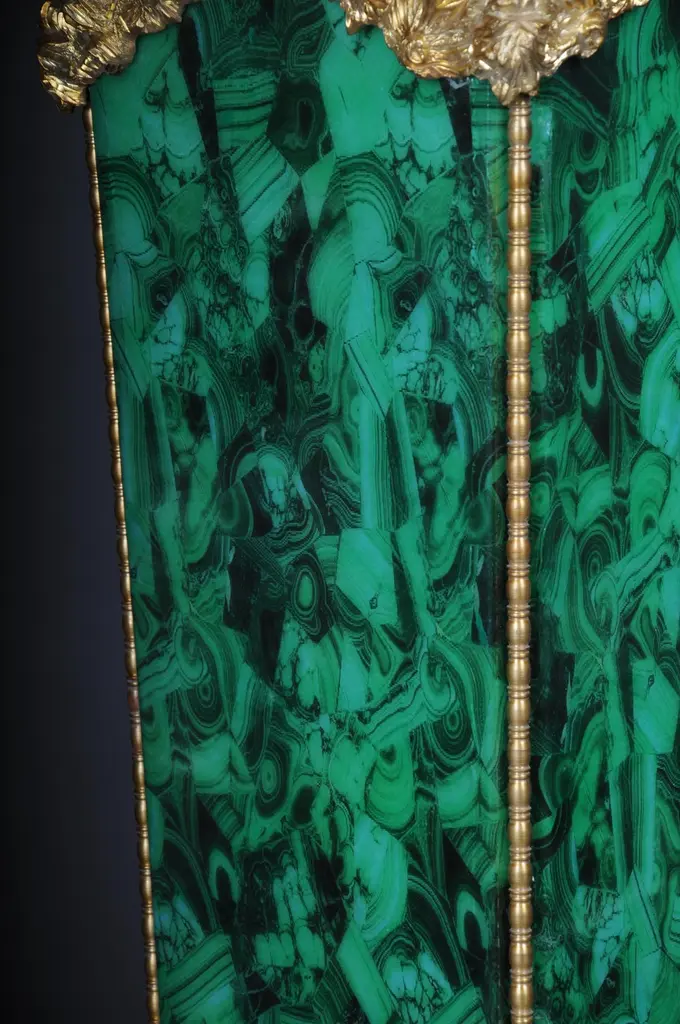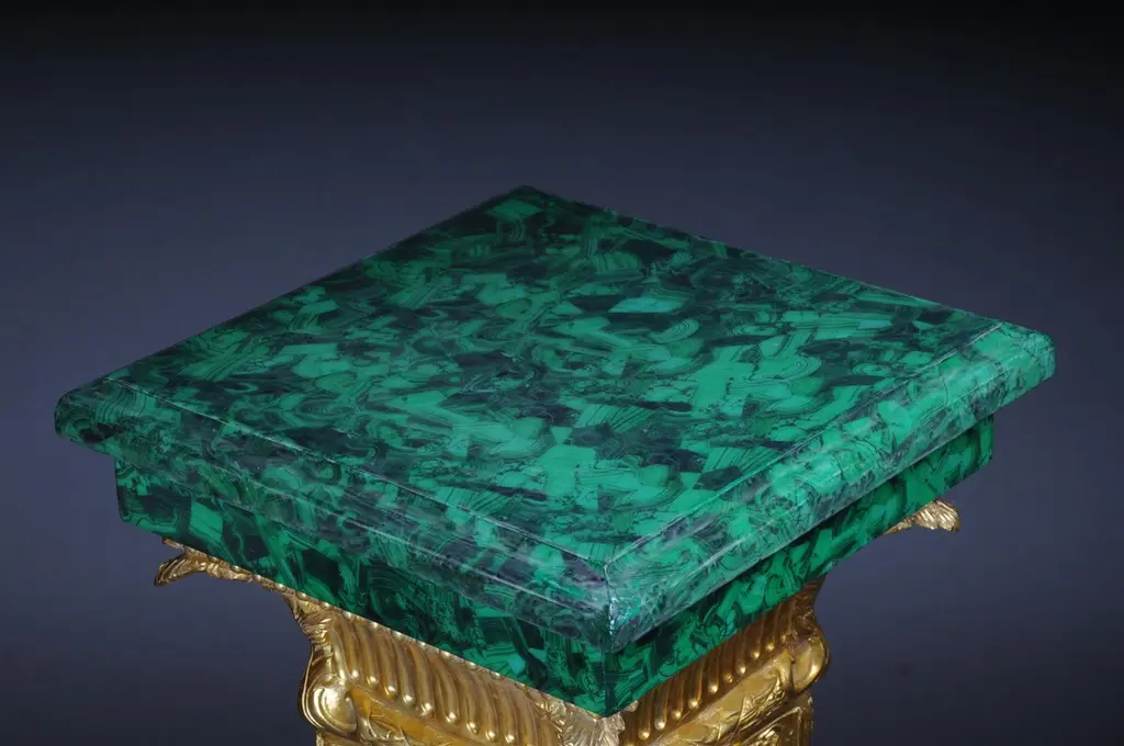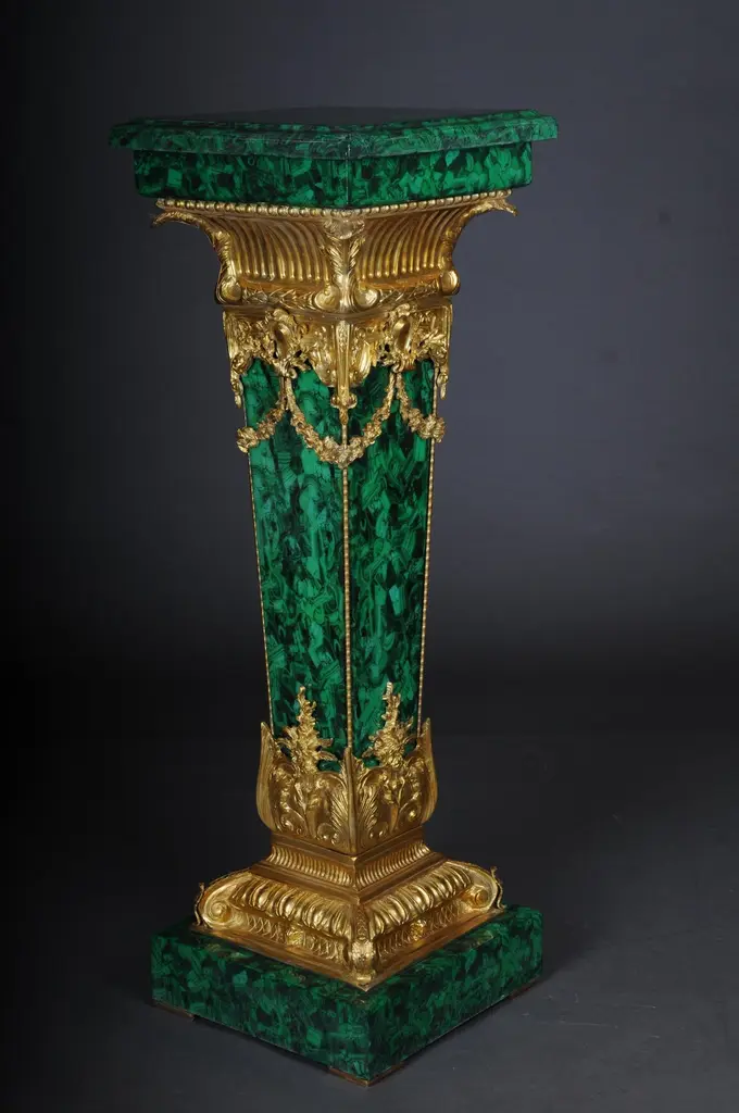 Majestic Marble Column with Malachite Bronze, Napoleon IIIImpressive and regal marble column with bronze fittings in Neo-Classicism style. Marble coated with malachite painting technique. Such a pillar is guaranteed to be a real eye-catcher and something very special.Mottle may vary slightly.
