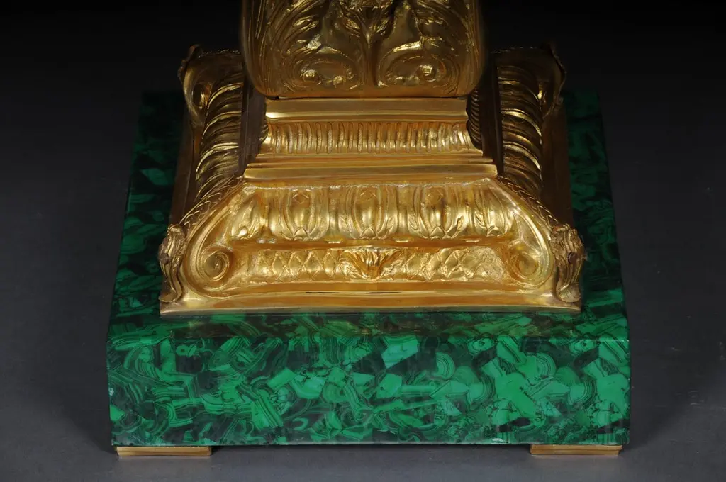 Majestic Marble Column With Malachite Bronze, Napoleon Iii