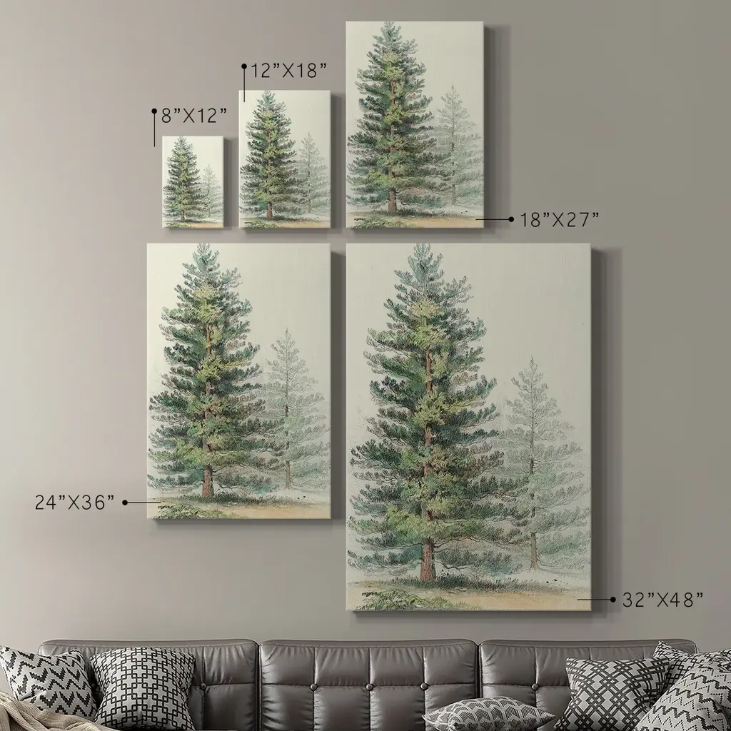 Majestic Pine I Premium Gallery Wrapped Canvas - Ready to Hang A premium hand stretched gallery wrapped canvas print created to last. Featuring a beveled a solid wood stretcher bar, each piece comes ready to hand 6 SIZES AVAILABLE 8''X12'' - Overall Size 12''X18'' - Overall Size 18''X27'' - Overall Size 24''x36'' - Overall Size 32''x48'' - Overall Size 40''x60'' - Overall Size Each piece is made to order. Built to Last Each piece comes ready to hang Solid wood stretcher Fade and Water resistant Made domestically
