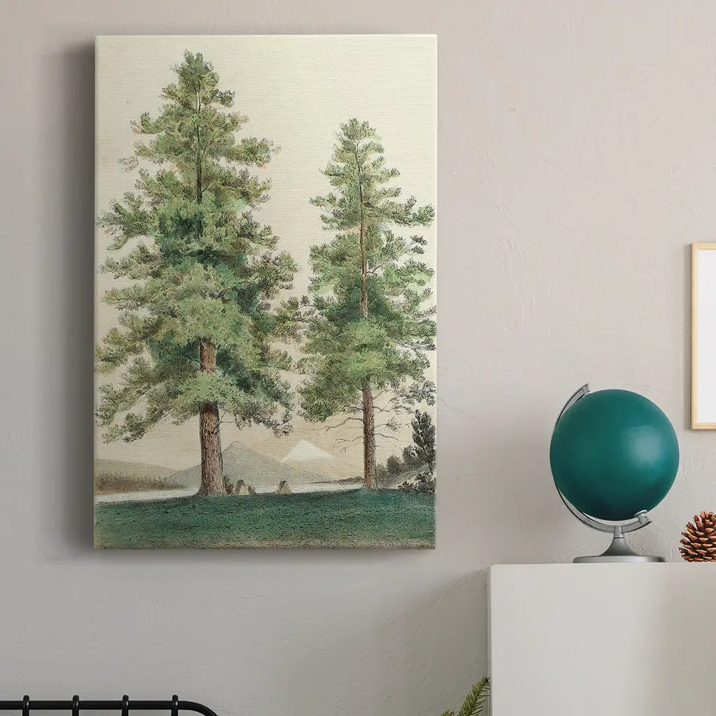 Majestic Pine II Premium Gallery Wrapped Canvas - Ready to Hang A premium hand stretched gallery wrapped canvas print created to last. Featuring a beveled a solid wood stretcher bar, each piece comes ready to hand 6 SIZES AVAILABLE 8''X12'' - Overall Size 12''X18'' - Overall Size 18''X27'' - Overall Size 24''x36'' - Overall Size 32''x48'' - Overall Size 40''x60'' - Overall Size Each piece is made to order. Built to Last Each piece comes ready to hang Solid wood stretcher Fade and Water resistant Made domestically