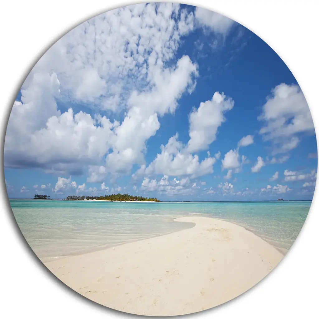 Bring Contemporary Abstraction to your home with this large Circle Metal wall art. This Majestic Seychelles Beach Panorama Metal Artwork makes it the focal point of any room or office. - White Gloss Coating ensures colors are extra vibrant with light reflection.- Aluminum grade Sheet Metal with 1 inch mounting frame on the back giving the illusion that the artwork is floating on the wall..- Mounting Brackets are included along with instructions.- High Quality Digital images are created directly into a glossy aluminum panel producing a stunning and captivating print into the glossy finish of the metal.- Water, Fire and Scratch resistant HD Aluminum panels.- Looks better than any photo paper and guaranteed to last at least 20 years- Easy to clean with a microfiber cloth. Colors are far superior to regular Canvas Art. - Easy to Hang