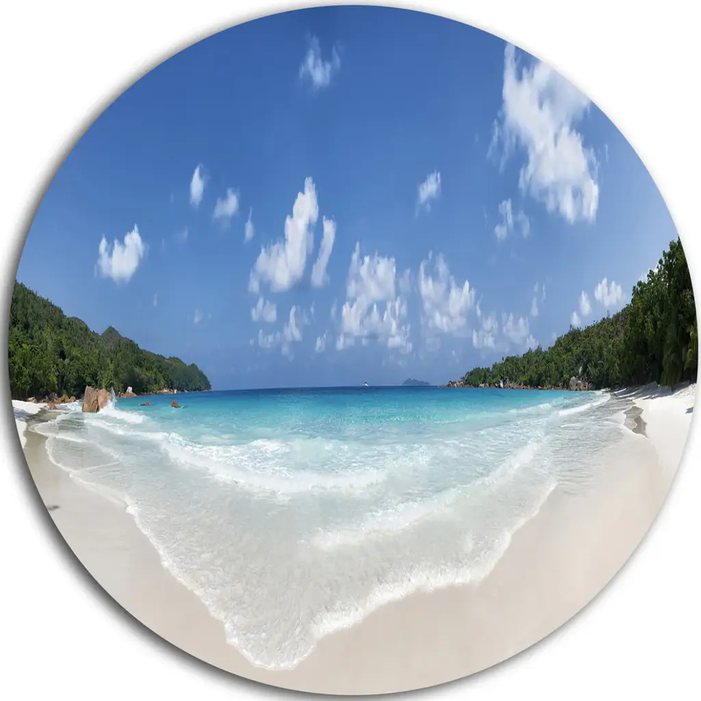 Majestic Seychelles Beach Panorama, Seascape Disc Metal Wall Art, 11"