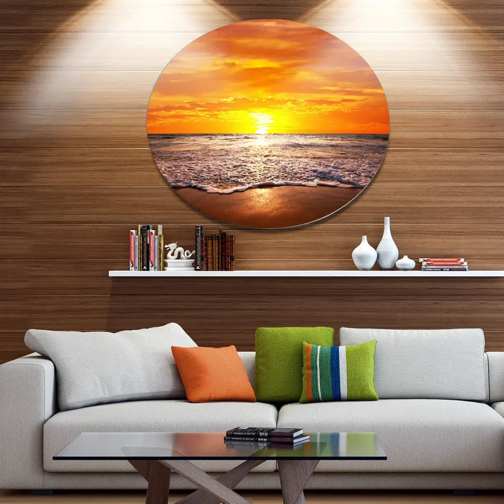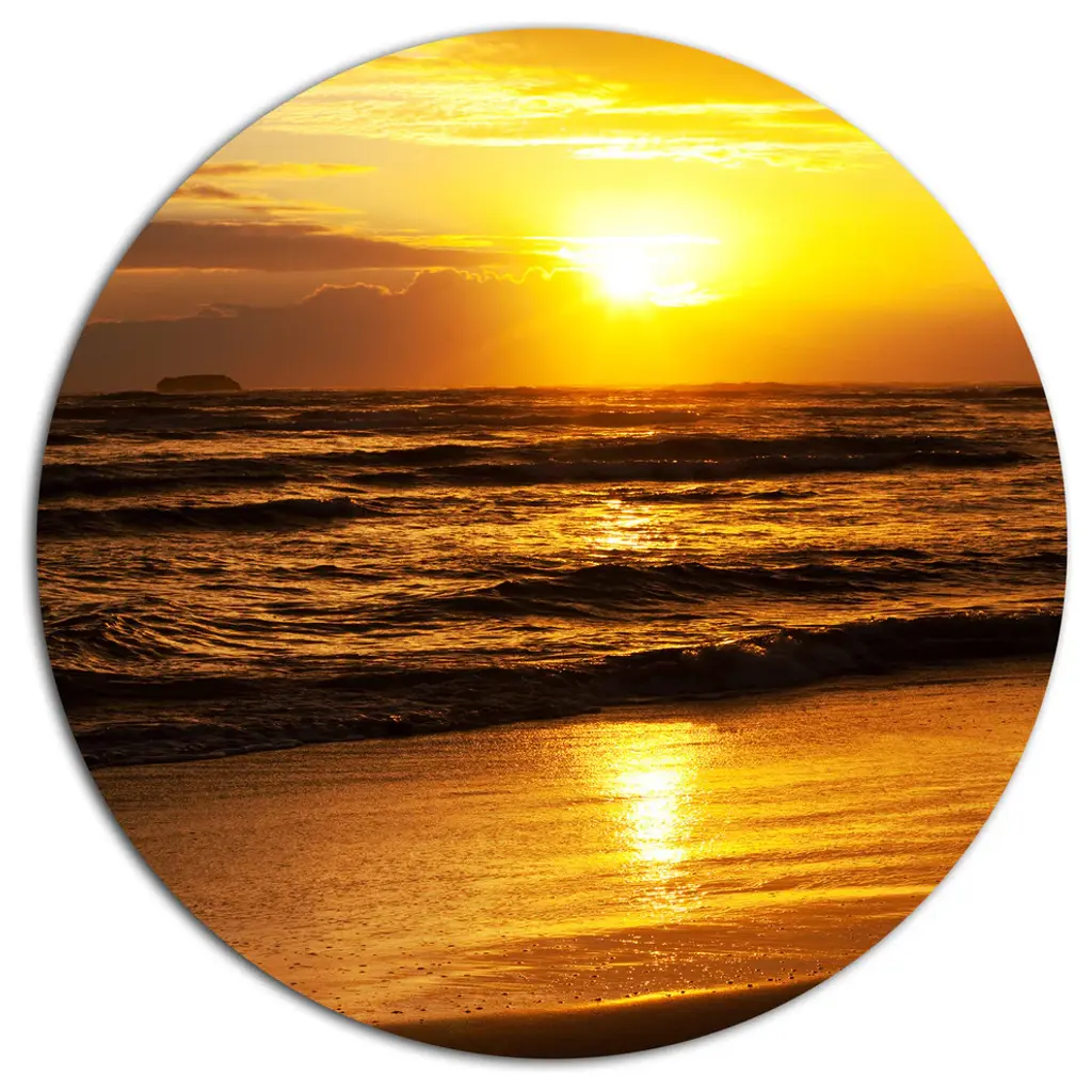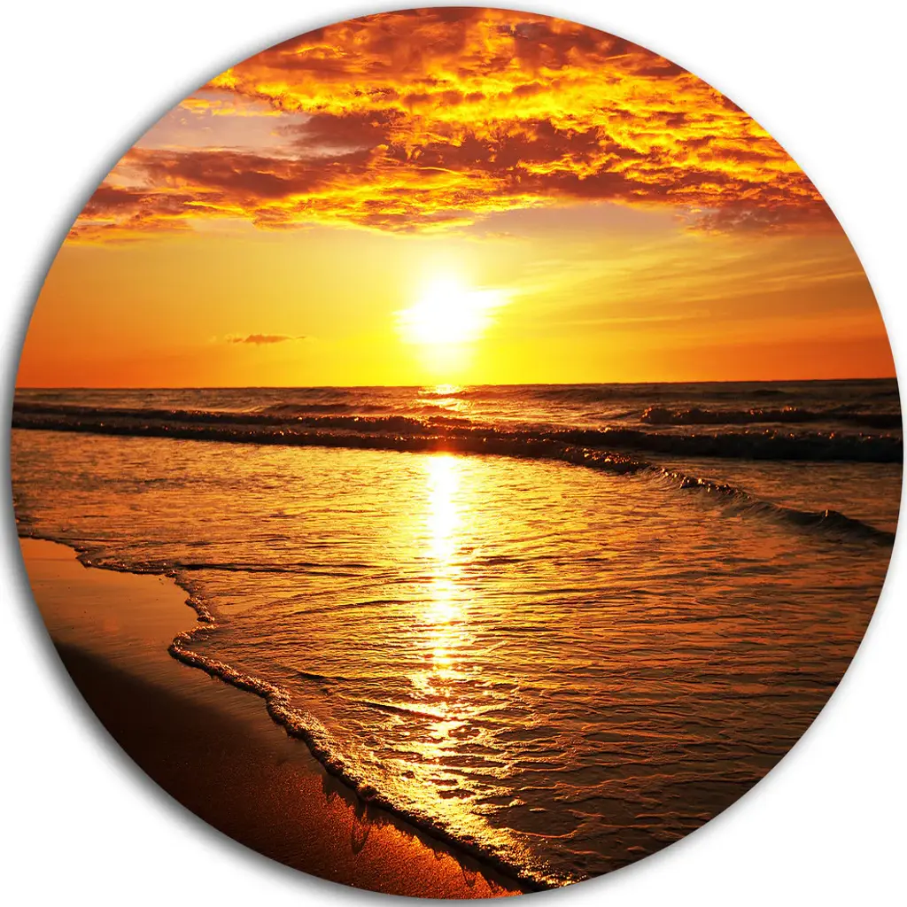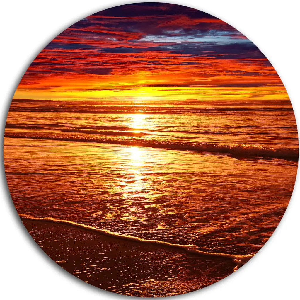 Majestic Sunset With Foaming Waves, Seashore Disc Metal Wall Art, 11"