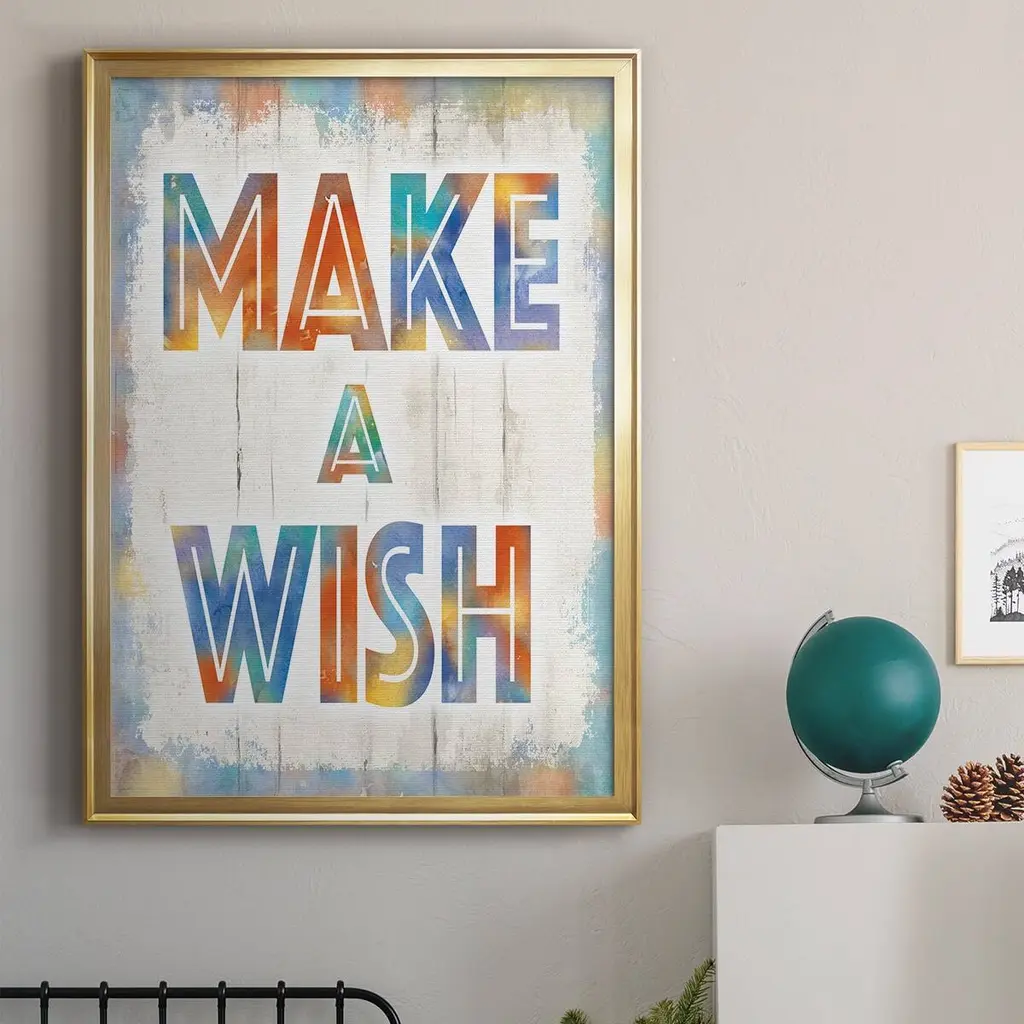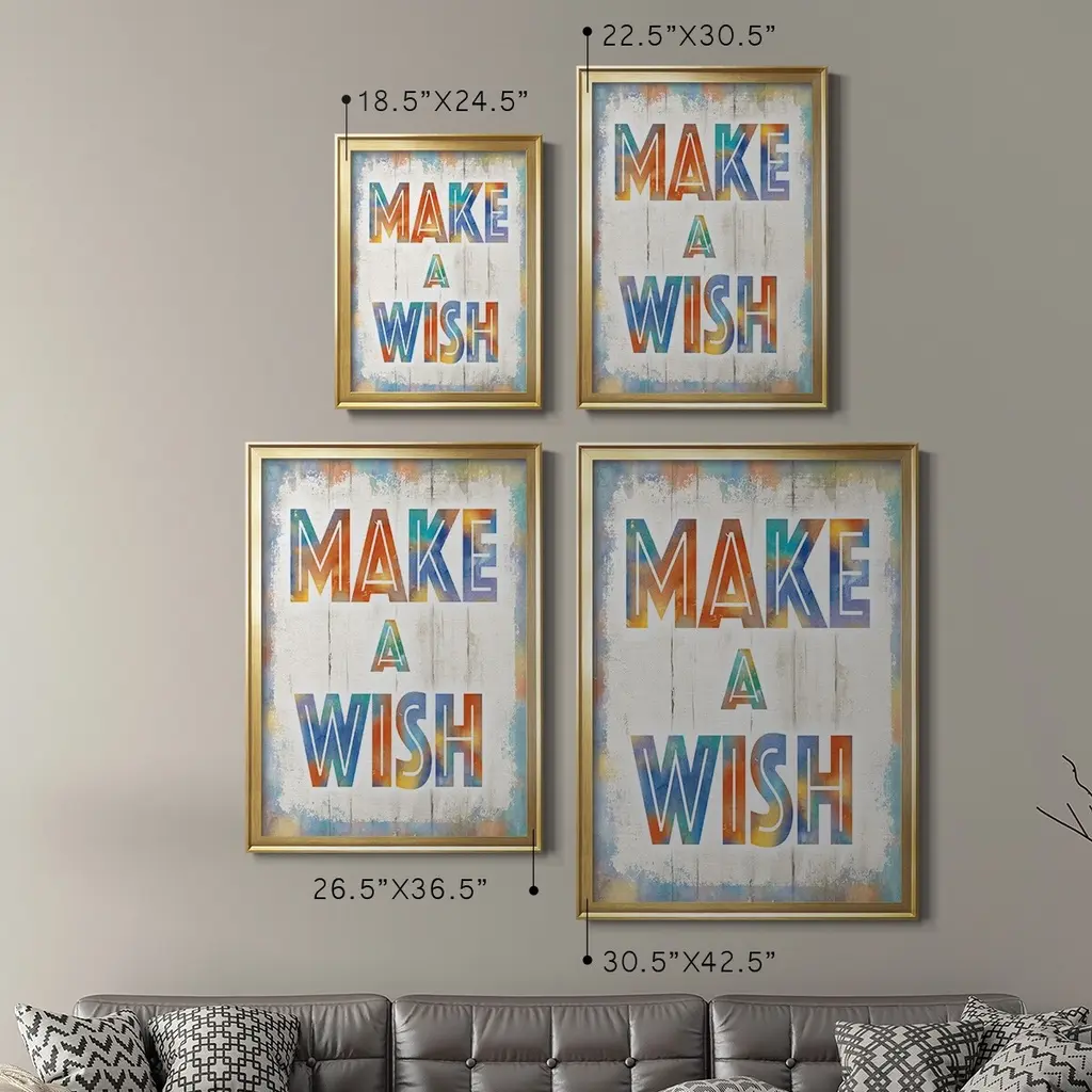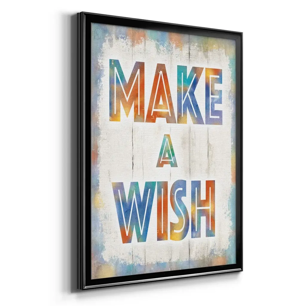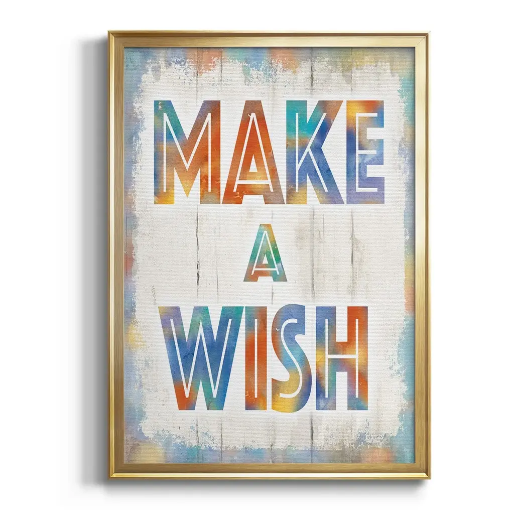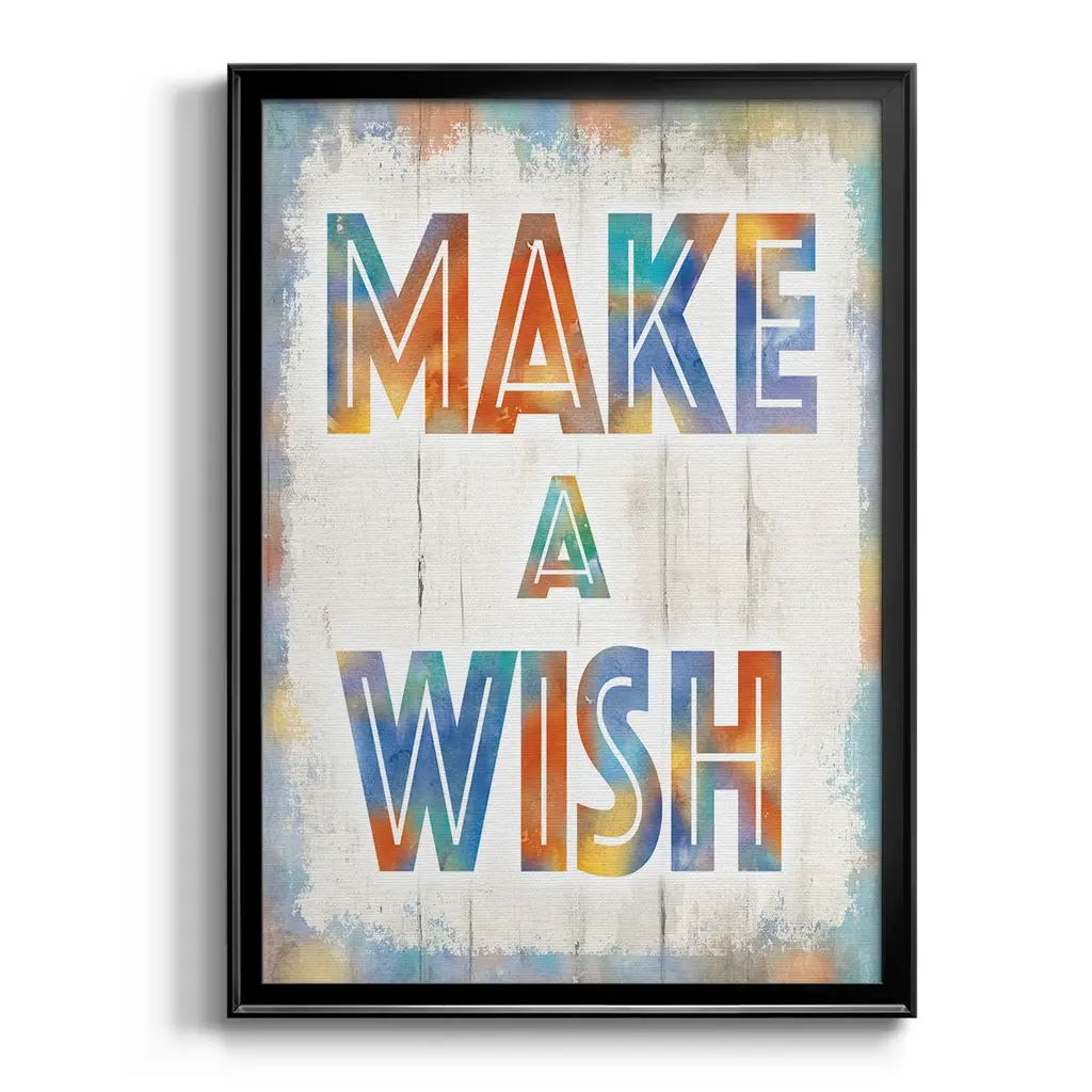 Make A Wish Premium Framed Print - Ready to Hang A Premium Framed Print created to last. Framed in distressed wood and available in an array of sizes and colors Featuring a beveled a solid wood stretcher bar, each piece comes ready to hand 4 SIZES AVAILABLE 30.5''X42.5'' - Overall Size 26.5'X36.5'' - Overall Size 22.5''x30.5'' - Overall Size 18.5''x24.5'' - Overall Size Each piece is made to order. Each piece comes with hanging hardware. Made in the USA Ready to Hang
