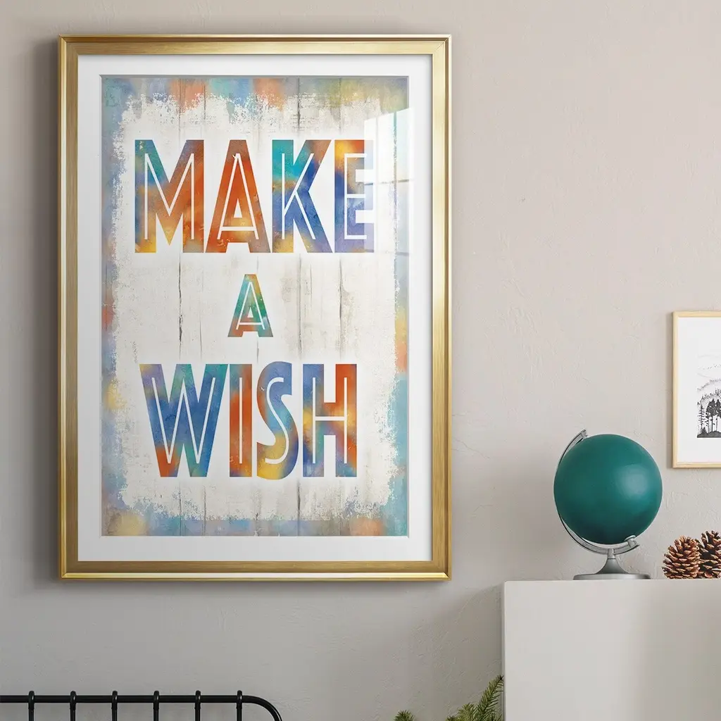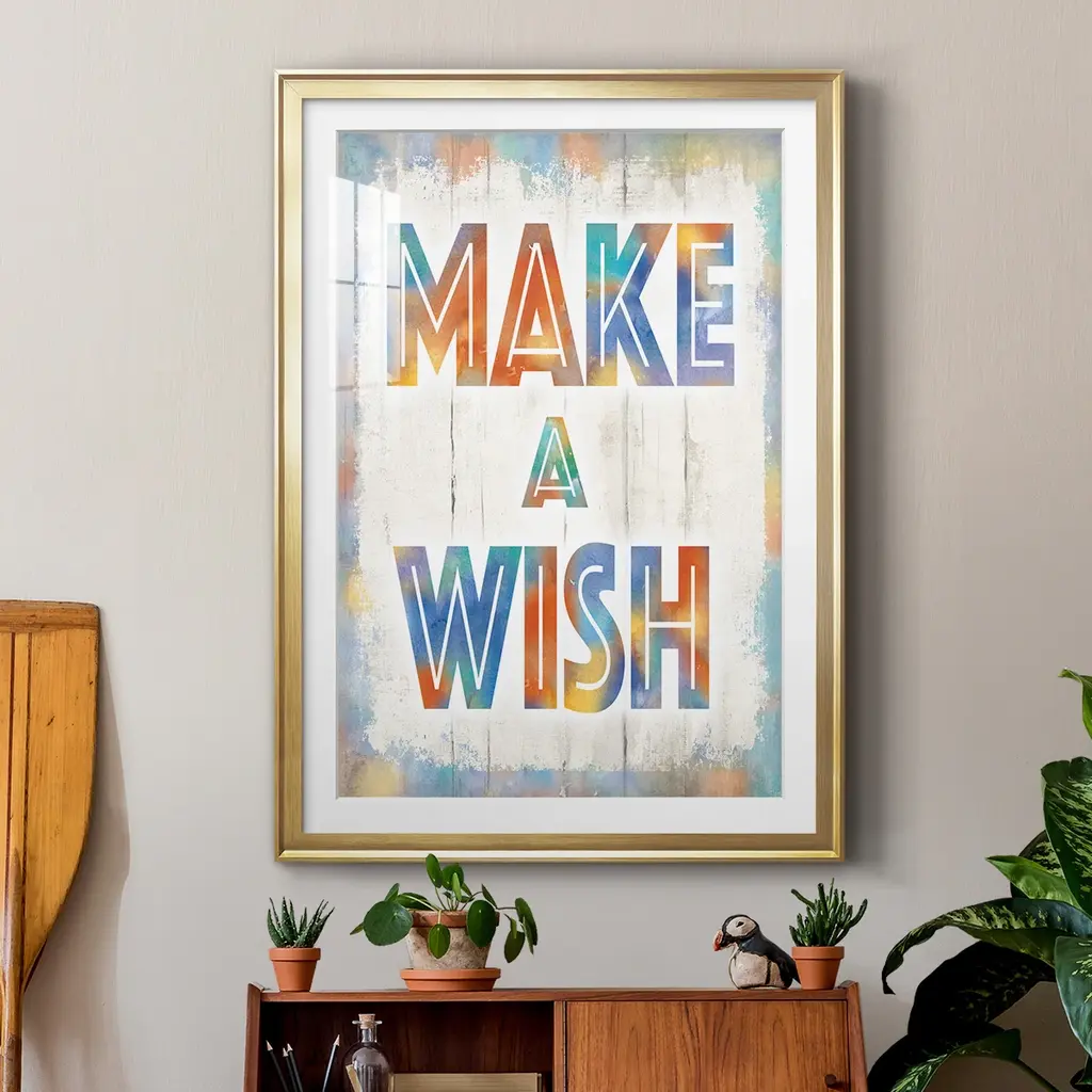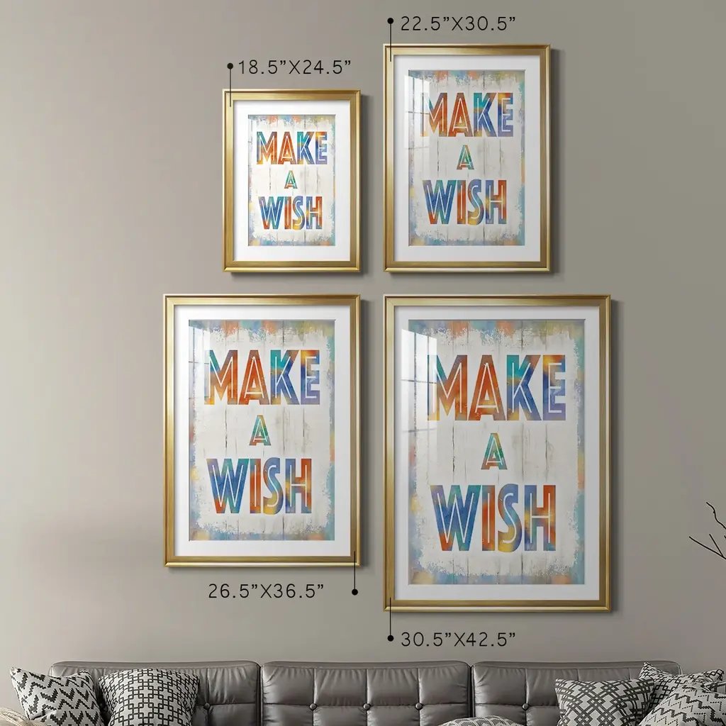 Make A Wish Premium Framed Print - Ready to Hang A Premium Framed Print created to last. Framed in distressed wood and available in an array of sizes and colors Featuring a beveled a solid wood stretcher bar, each piece comes ready to hand 4 SIZES AVAILABLE 30.5''X42.5'' - Overall Size 26.5'X36.5'' - Overall Size 22.5''x30.5'' - Overall Size 18.5''x24.5'' - Overall Size Each piece is made to order. Each piece comes with hanging hardware. Made in the USA Ready to Hang Giclee Paper Print Acrylic Glass Beveled Matt Board