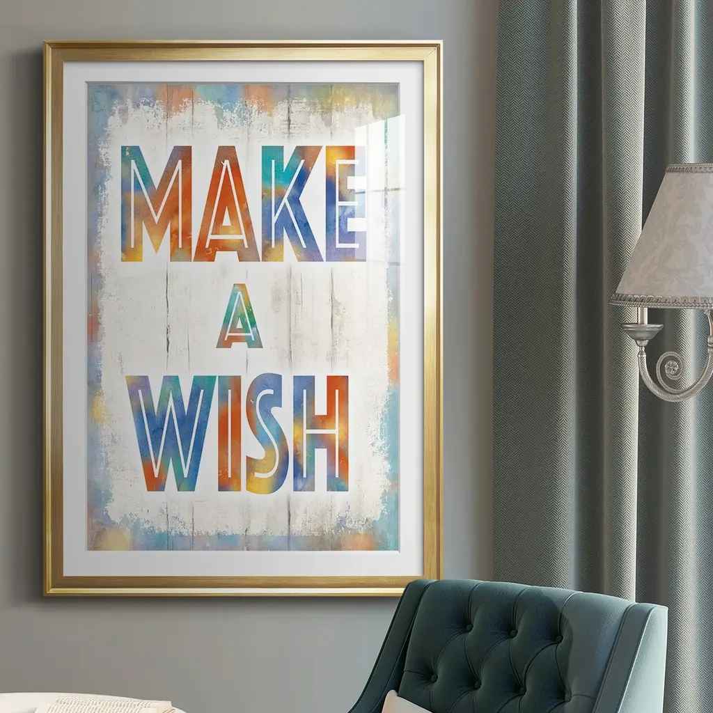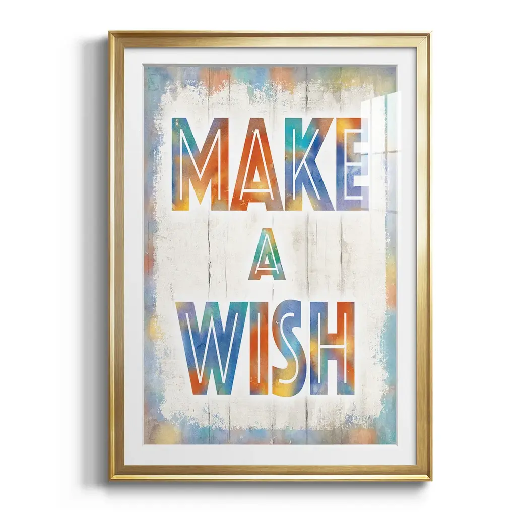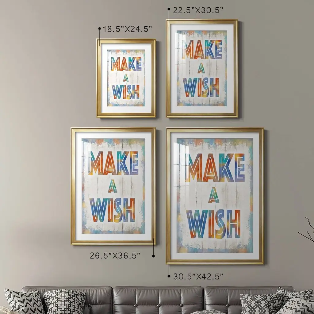 Make A Wish Premium Framed Print - Ready to Hang A Premium Framed Print created to last. Framed in distressed wood and available in an array of sizes and colors Featuring a beveled a solid wood stretcher bar, each piece comes ready to hand 4 SIZES AVAILABLE 30.5''X42.5'' - Overall Size 26.5'X36.5'' - Overall Size 22.5''x30.5'' - Overall Size 18.5''x24.5'' - Overall Size Each piece is made to order. Each piece comes with hanging hardware. Made in the USA Ready to Hang Giclee Paper Print Acrylic Glass Beveled Matt Board