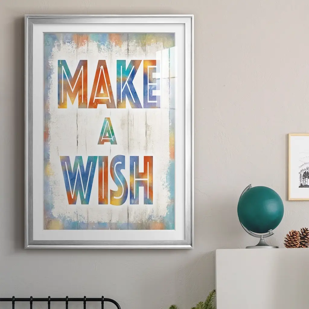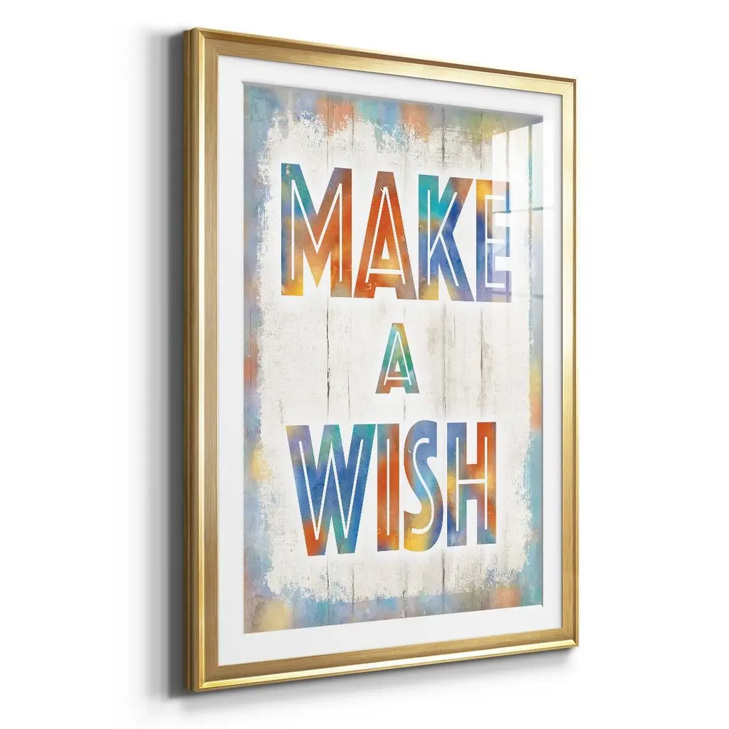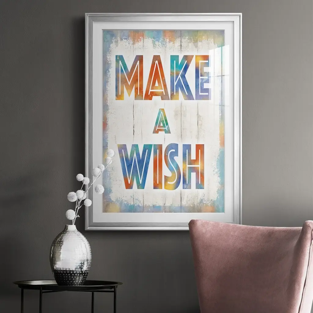 Make A Wish Premium Framed Print - Ready to Hang A Premium Framed Print created to last. Framed in distressed wood and available in an array of sizes and colors Featuring a beveled a solid wood stretcher bar, each piece comes ready to hand 4 SIZES AVAILABLE 30.5''X42.5'' - Overall Size 26.5'X36.5'' - Overall Size 22.5''x30.5'' - Overall Size 18.5''x24.5'' - Overall Size Each piece is made to order. Each piece comes with hanging hardware. Made in the USA Ready to Hang Giclee Paper Print Acrylic Glass Beveled Matt Board