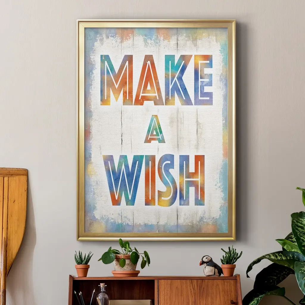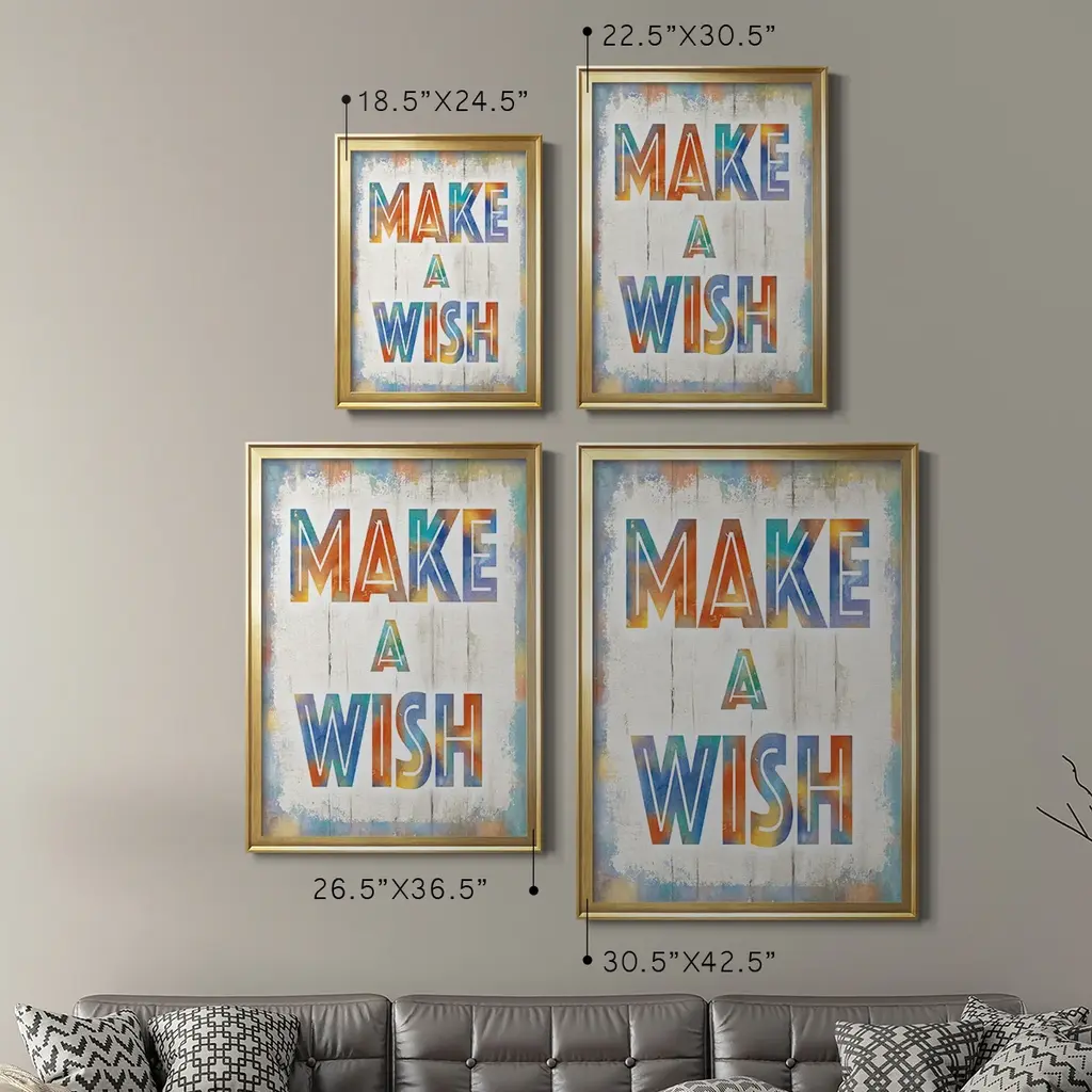 Make A Wish Premium Framed Print - Ready to Hang A Premium Framed Print created to last. Framed in distressed wood and available in an array of sizes and colors Featuring a beveled a solid wood stretcher bar, each piece comes ready to hand 4 SIZES AVAILABLE 30.5''X42.5'' - Overall Size 26.5'X36.5'' - Overall Size 22.5''x30.5'' - Overall Size 18.5''x24.5'' - Overall Size Each piece is made to order. Each piece comes with hanging hardware. Made in the USA Ready to Hang