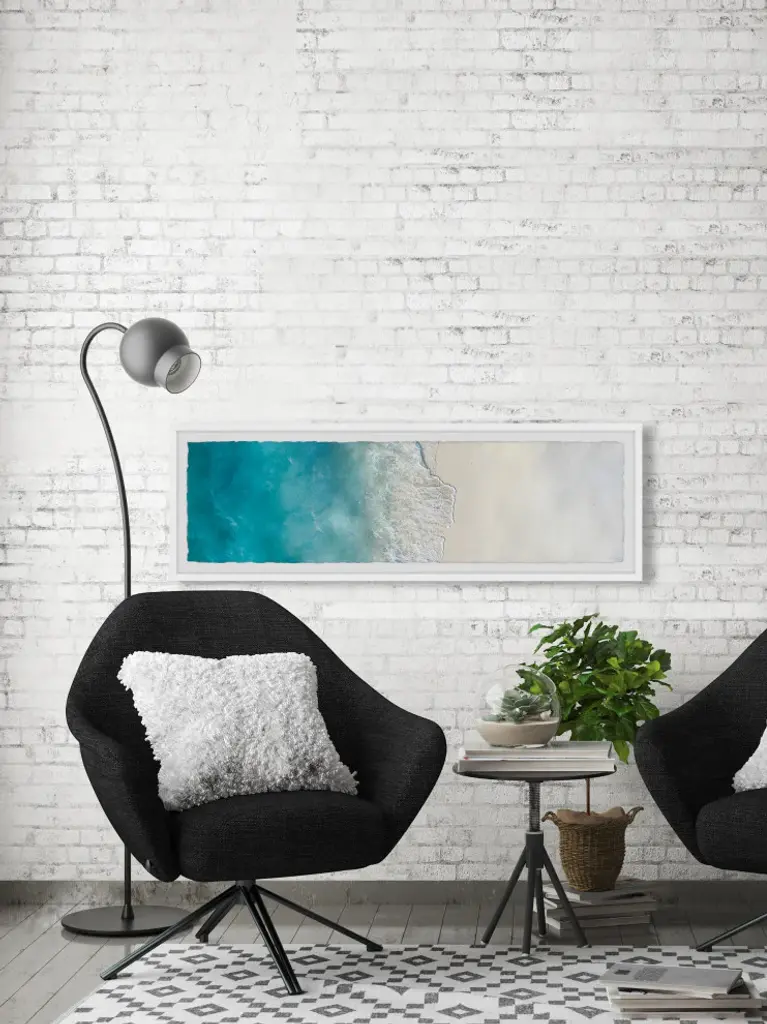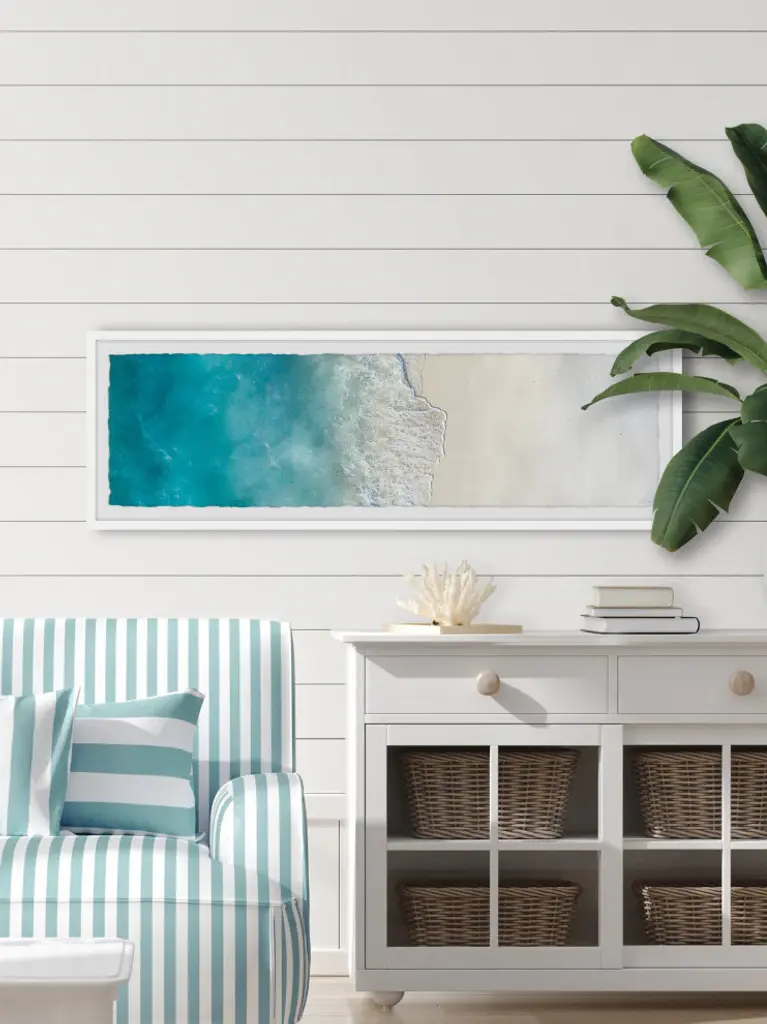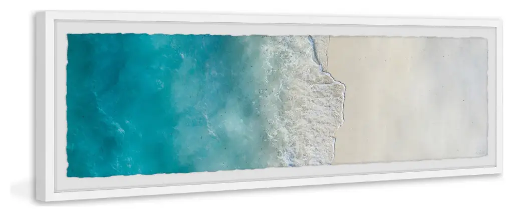 Transform any wall into a coastal centerpiece with this photographic print that features a bird''s eye view of the blue ocean and sandy shoreline. Proudly printed in the USA, this piece is printed on high quality archive paper and professionally hand-framed. With wall-mounting hooks included, this artful accent is ready to hang up as soon as it reaches your front door.- Top quality Giclee print on high resolution Archive Paper- Hand cut deckled edges- High quality durable non-warping frame- Finished under shatter resistant plexiglass- Arrives ready to hang- Includes a certificate of authenticity- Printed in the USA