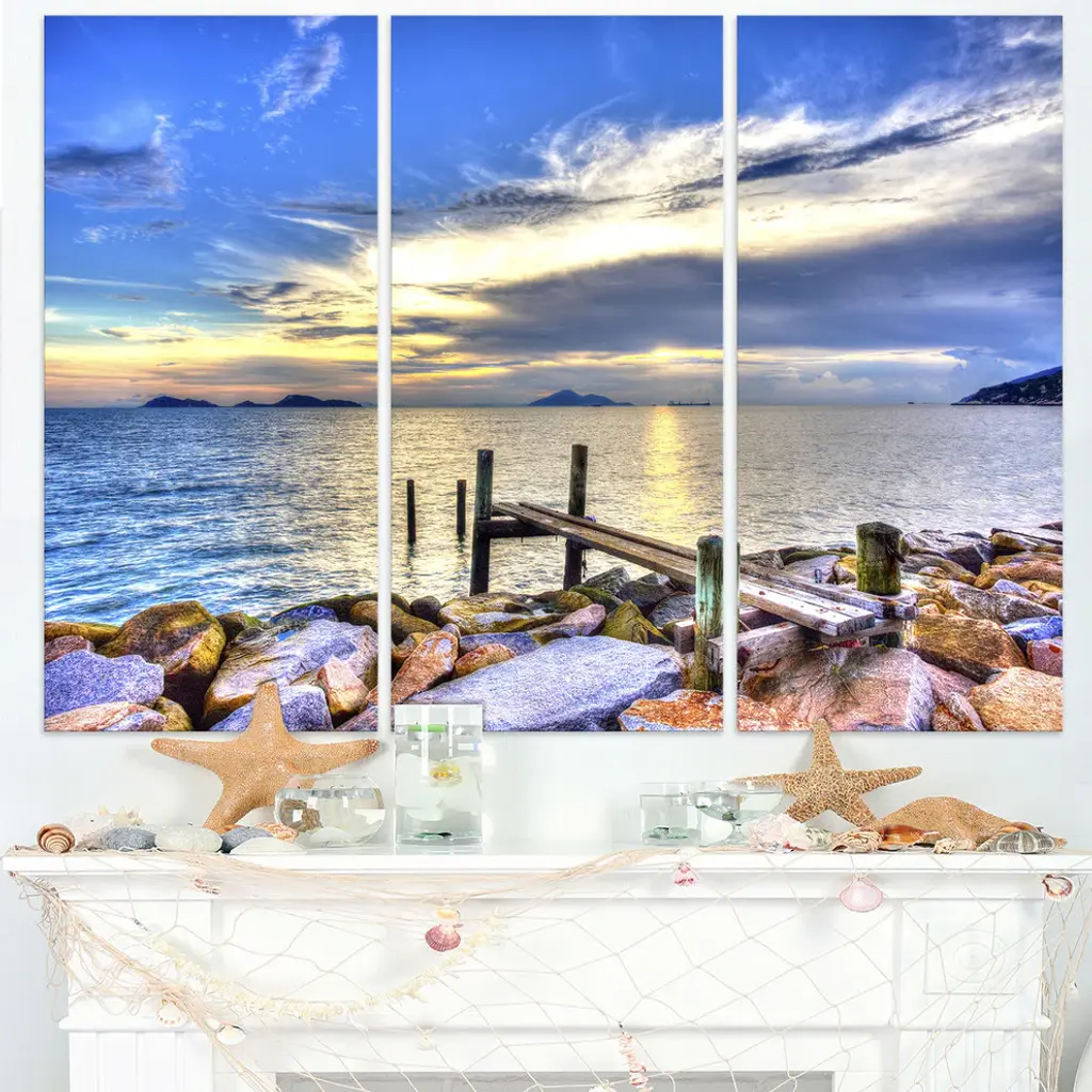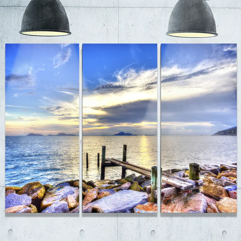 "Makeshift Wooden Pier Into The Sea" Metal Wall Art, 3 Panels, 36"x28"