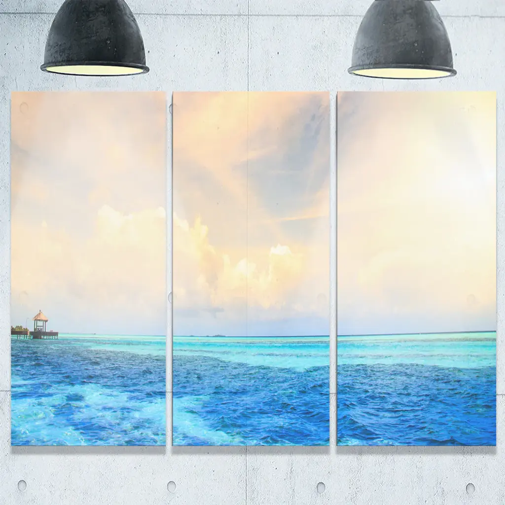 "Maldives Bungalows Sunset Panorama" Metal Wall Art, 3 Panels, 36"x28"