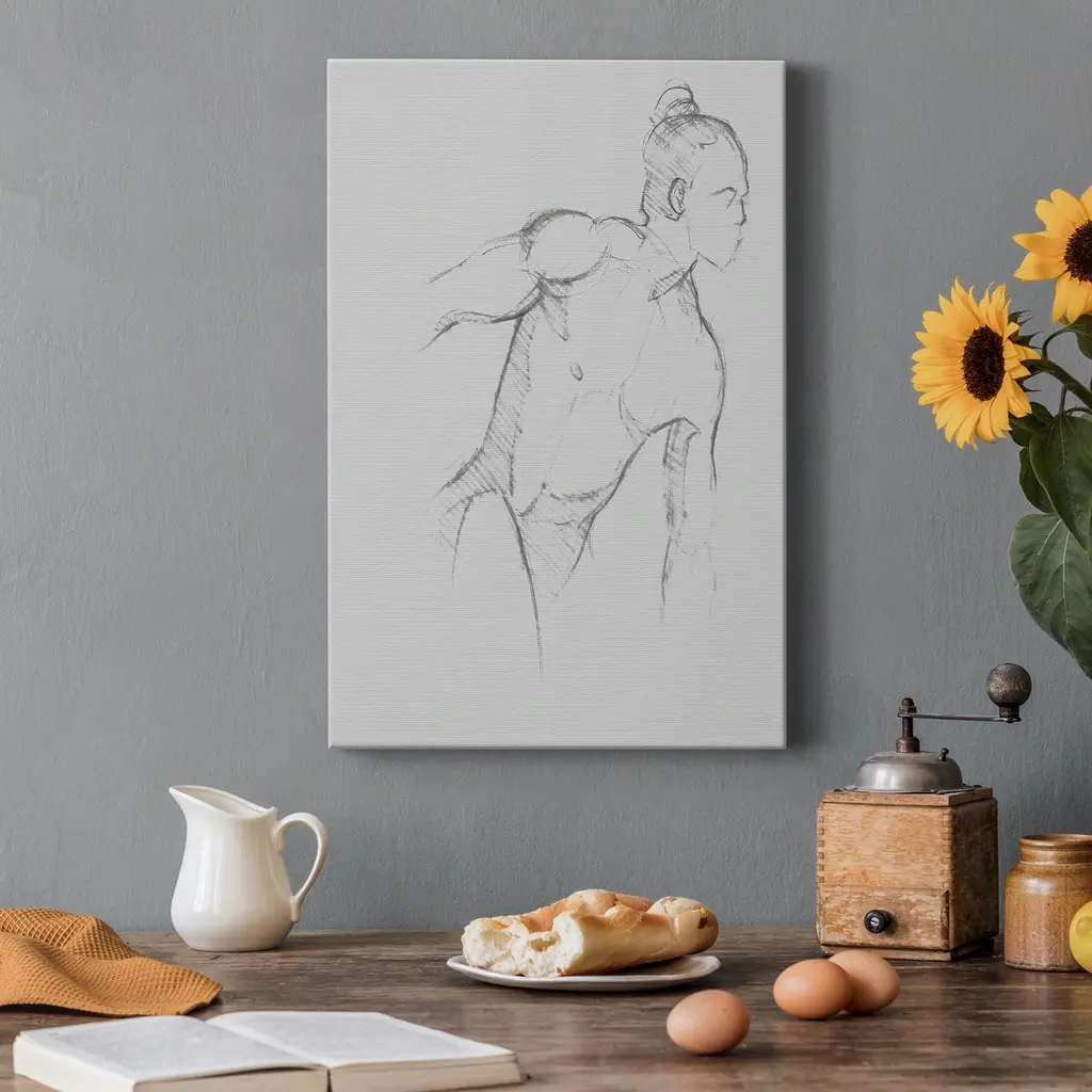 Male Torso Sketch II Premium Gallery Wrapped Canvas - Ready to Hang A premium hand stretched gallery wrapped canvas print created to last. Featuring a beveled a solid wood stretcher bar, each piece comes ready to hand 5 SIZES AVAILABLE 8''X12'' - Overall Size 16'X20'' - Overall Size 24''x32'' - Overall Size 30''x40'' - Overall Size 36''x48'' - Overall Size Each piece is made to order. Built to Last Each piece comes ready to hang Solid wood stretcher Fade and Water resistant Made domestically
