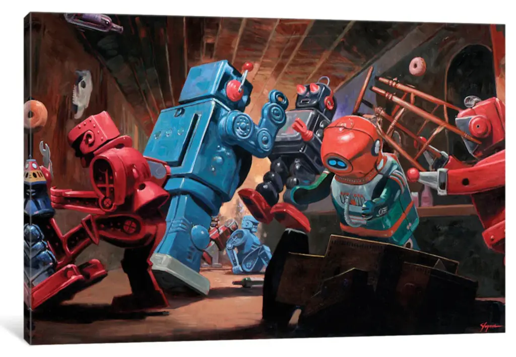 The artwork is crafted with 100-percent cotton artist-grade canvas, professionally hand-stretched and stapled over pine-wood bars in gallery wrap style - a method utilized by artists to present artwork in galleries. Fade-resistant archival inks guarantee perfect color reproduction that remains vibrant for decades even when exposed to strong light. Add brilliance in color and exceptional detail to your space with the contemporary and uncompromising style of iCanvas. Style : "Illustration, Posters, & Graphic Design" Orientation : Horizontal Shape : Rectangle Artist : Eric Joyner Height : 40 Width : 26Thickness : 1.5Product Type :Gallery wrapped canvas artNew :Ready to be displayed right out of the box, including free hanging accessories and instructions for a quick and easy hanging process that achieves the best positioning results.Quality Wood Bars :Shrink-resistant wooden-bar frame with tensioning wedges that allow for tightening of the canvas from the reverse side.Dependent and Fast:Produced by the largest US canvas art supplier.