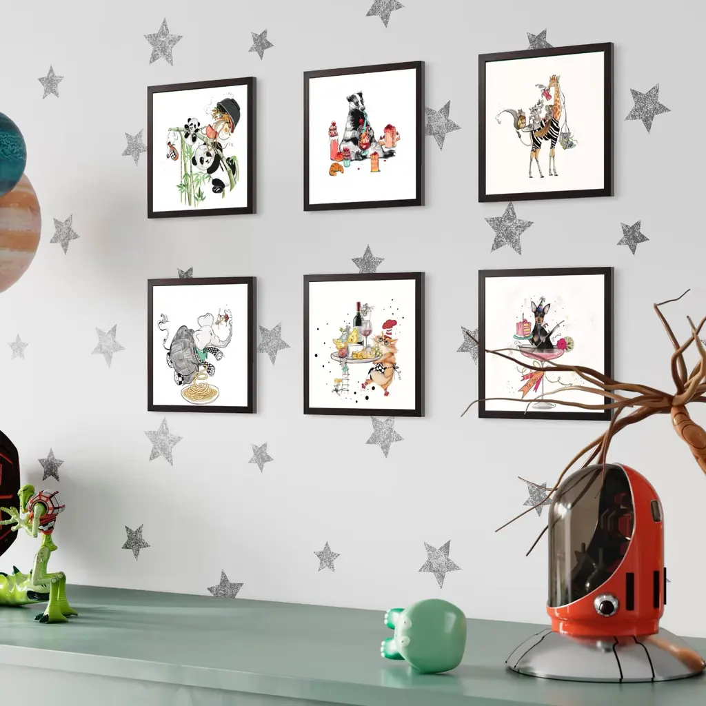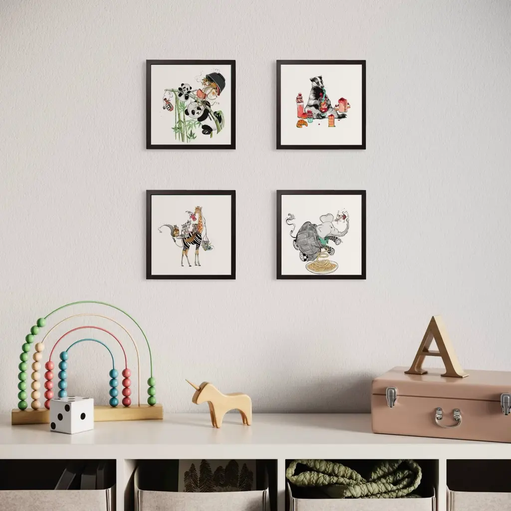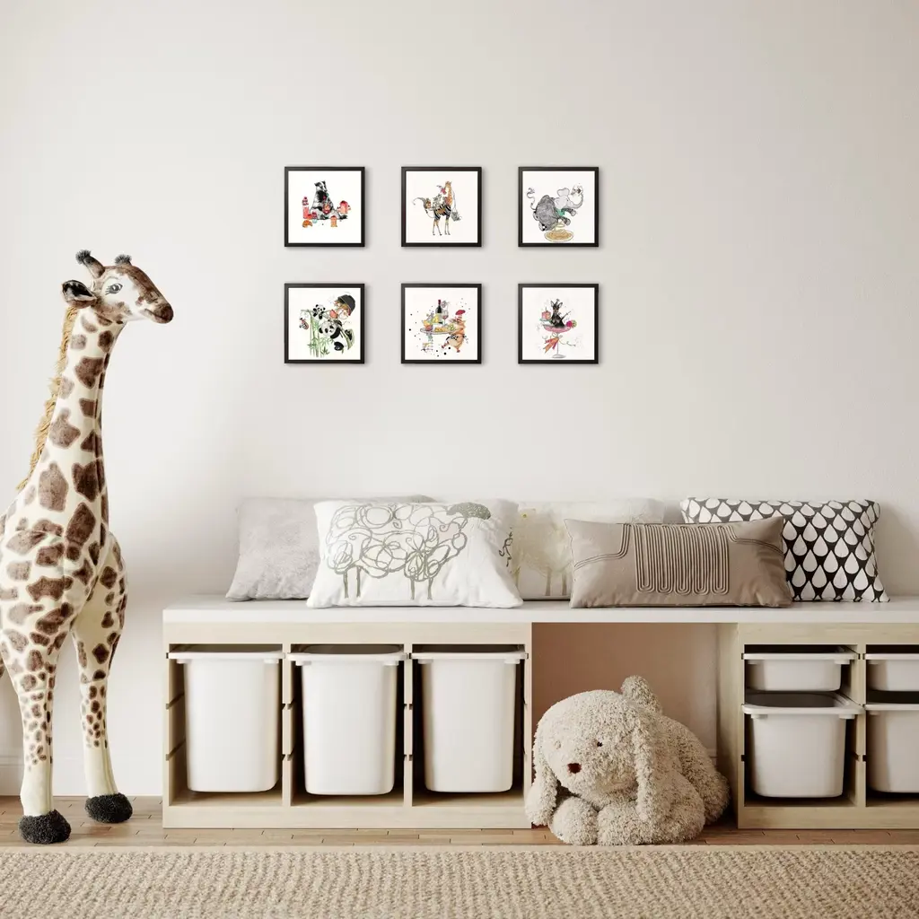 Mamma Mia Wall Art Set is a special Un Poco collection consisting of 6 pieces. Each illustration has been carefully hand-drawn by the artist and brought to life through high-quality printing.Size: Each frame measures 22×22 cmPrint: Fine art printing with high resolutionFrame: Wood-look finishUse: Each piece comes with both a wall-mounting hook and a stand, so it can be displayed on the wall or placed on a shelf or table.The “Mamma Mia” collection is inspired by the flavors of Italy and our animal friends. These charming illustrations come to life in vibrant, lasting colors with fine art printing. With its wood-look frame and 22×22 cm size, each artwork tells a warm story—whether displayed on a wall or resting on a shelf.