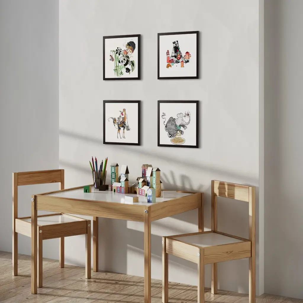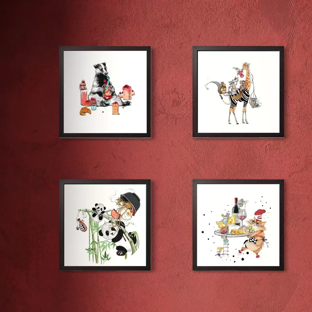 Mamma Mia is a four-piece wall art collection inspired by the joy, cuisine, and cultural spirit of Italy. Featuring illustrations of pasta, cheese, wine, and espresso, each artwork is designed to bring Mediterranean warmth, Italian vibrancy, and a modern artistic touch into any living space.The illustrations were meticulously created by painters, and the collection is produced in limited quantities. Contemporary lines blend with everyday Italian scenes, offering both an artistic and cultural expression.Size: Each frame measures 22×22 cmPrint: Fine art printing with high resolutionFrame: Wood-look finishUse: Each piece comes with both a wall-mounting hook and a stand, so it can be displayed on the wall or placed on a shelf or table.