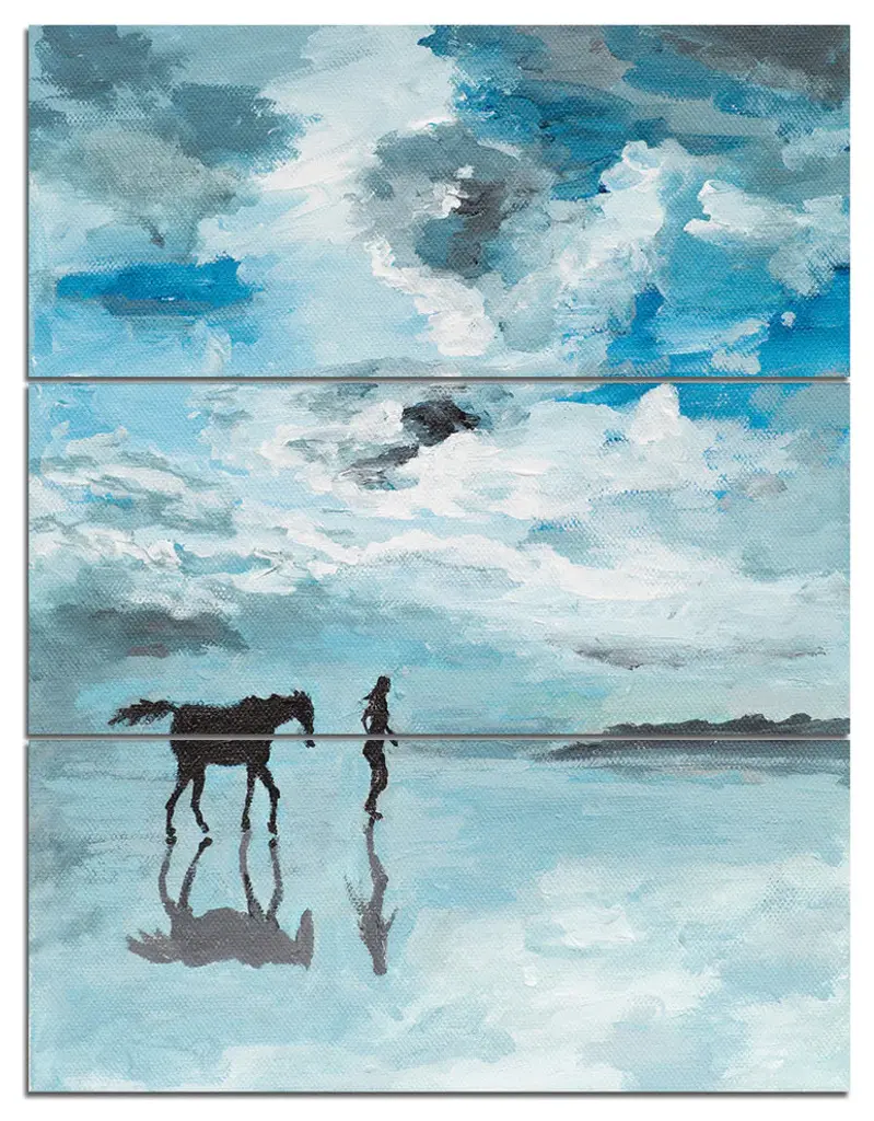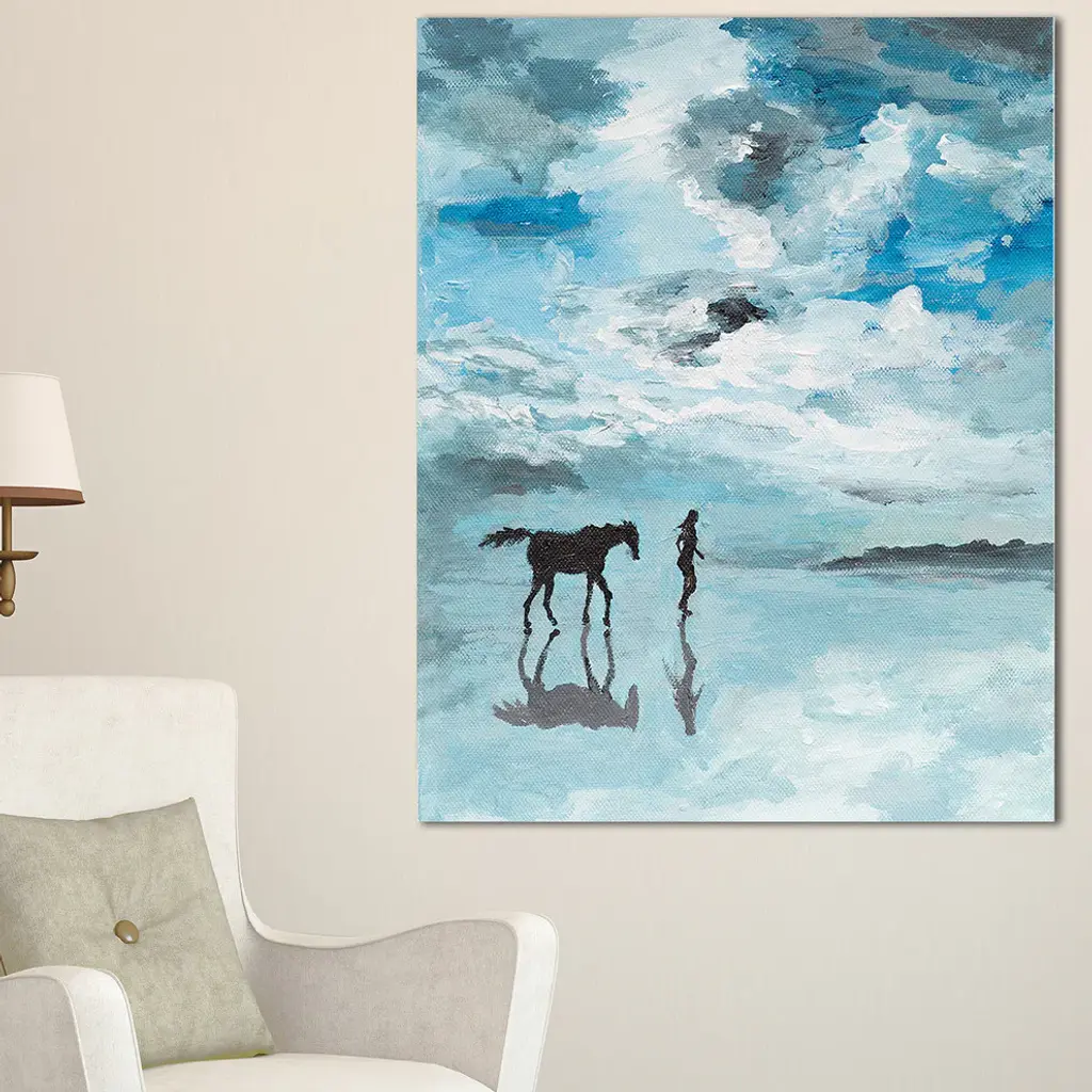 The Man and Horse Running on Water canvas art print is sure to make an impression on anyone who sees it. This artwork is gallery wrapped around a 1-inch solid wood frame and arrives carefully packaged and entirely ready to hang on the wall. Design Art only uses the highest resolution and pigments to ensure a crisp colorful print that is never faded or pixelated. This artwork is sure to be a conversation starter in any home or office.