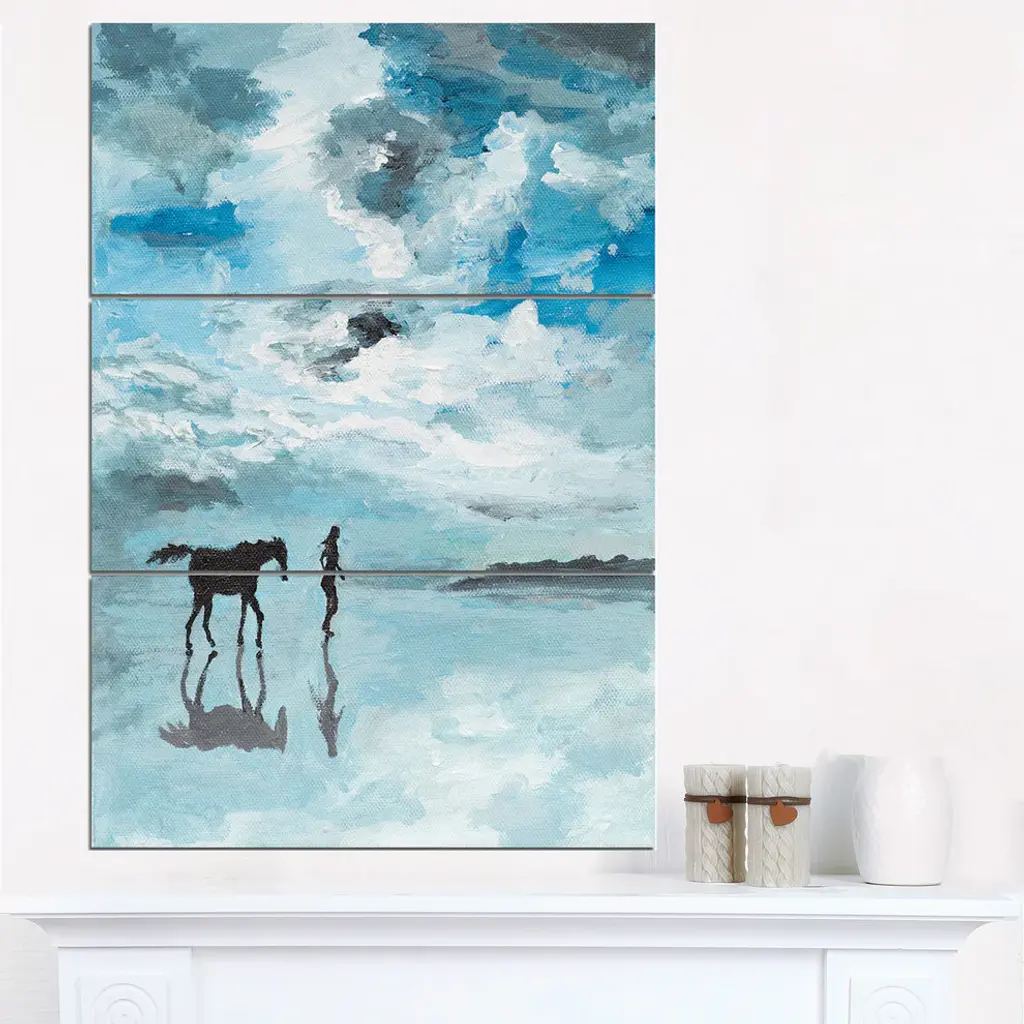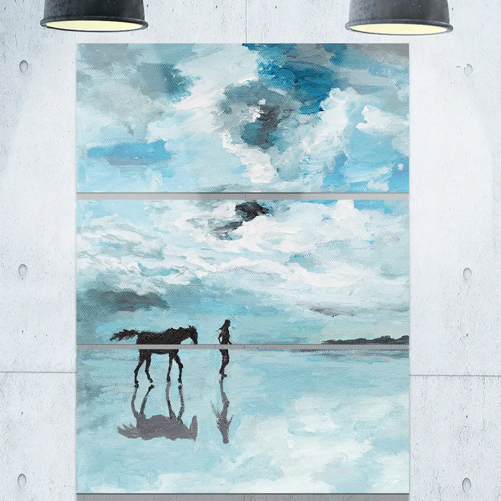 "Man And Horse Running On Water" Painting Metal Wall Art, 3 Panels, 28"x36"