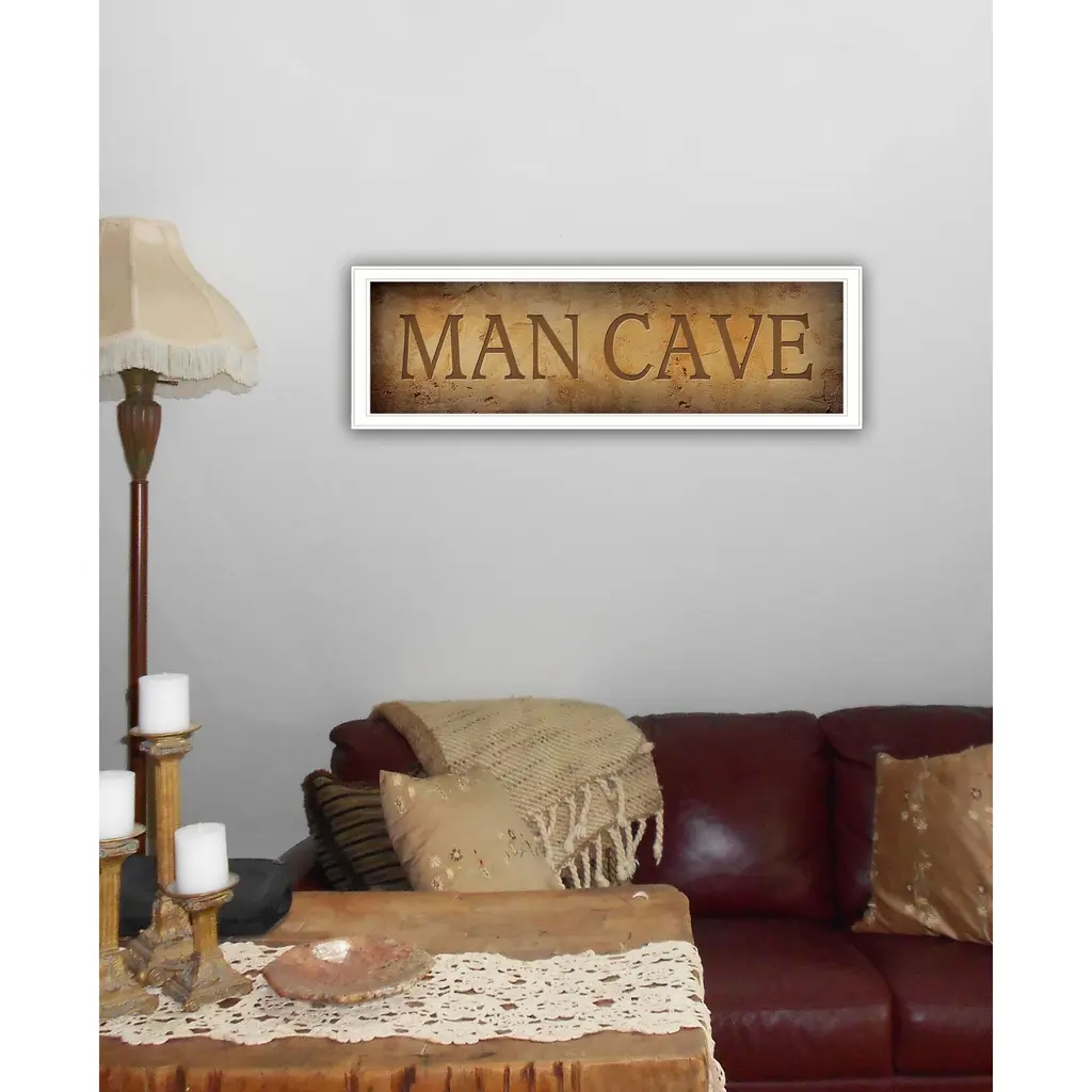 The man cave 3 white framed print wall art is the perfect decorative accessory for your home. This print is a visual artistic expression that allows you to decorate your space in style. Reproduced for you on paper, this hanging decorative accent will be a trendy and fashionable way to dress your walls. Adding this hanging wall art to your space to make your room feel more finished and attractive. Utilize this opportunity to create a focal point in the room with this fabulous wall decor option. 11" H x 33" W x 1" D