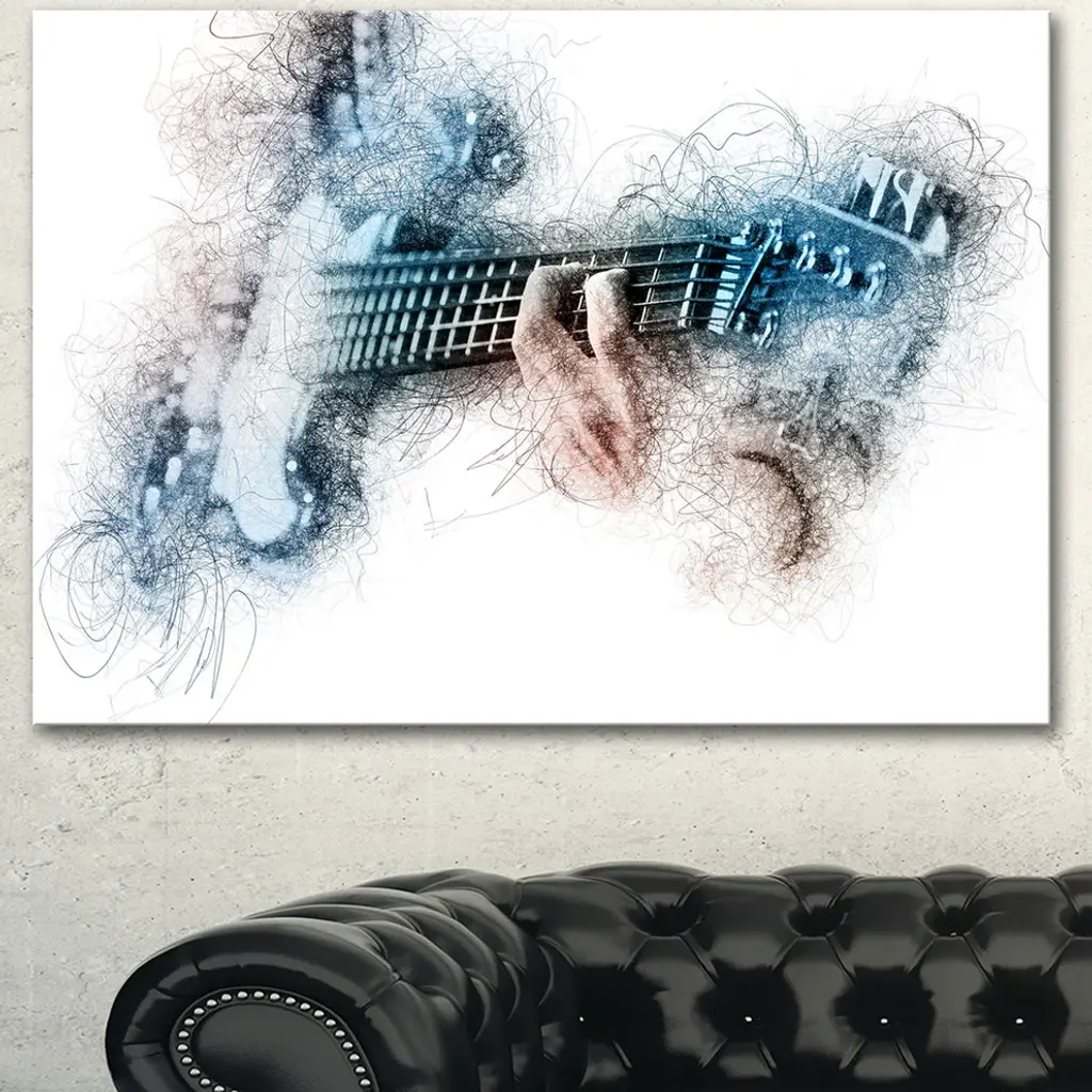 Man Playing A Guitar Watercolor, Contemporary Canvas Art Print, 60"x28"