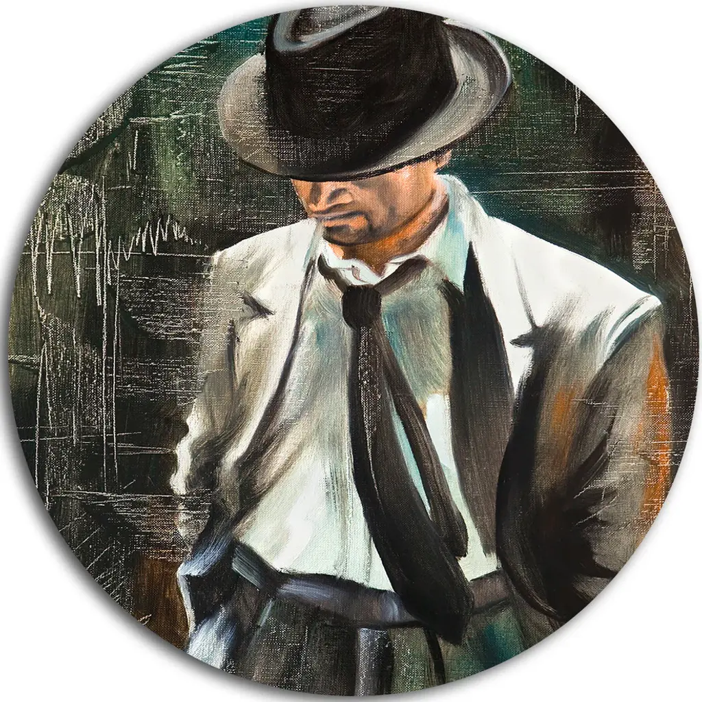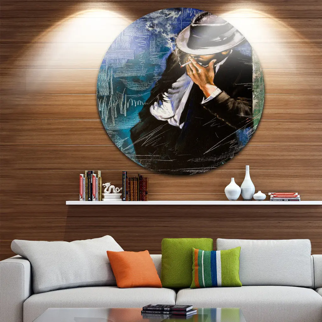 Bring Contemporary Abstraction to your home with this large Circle Metal wall art. This Man with Cigarette Metal Artwork makes it the focal point of any room or office. - White Gloss Coating ensures colors are extra vibrant with light reflection.- Aluminum grade Sheet Metal with 1 inch mounting frame on the back giving the illusion that the artwork is floating on the wall..- Mounting Brackets are included along with instructions.- High Quality Digital images are created directly into a glossy aluminum panel producing a stunning and captivating print into the glossy finish of the metal.- Water, Fire and Scratch resistant HD Aluminum panels.- Looks better than any photo paper and guaranteed to last at least 20 years- Easy to clean with a microfiber cloth. Colors are far superior to regular Canvas Art. - Easy to Hang
