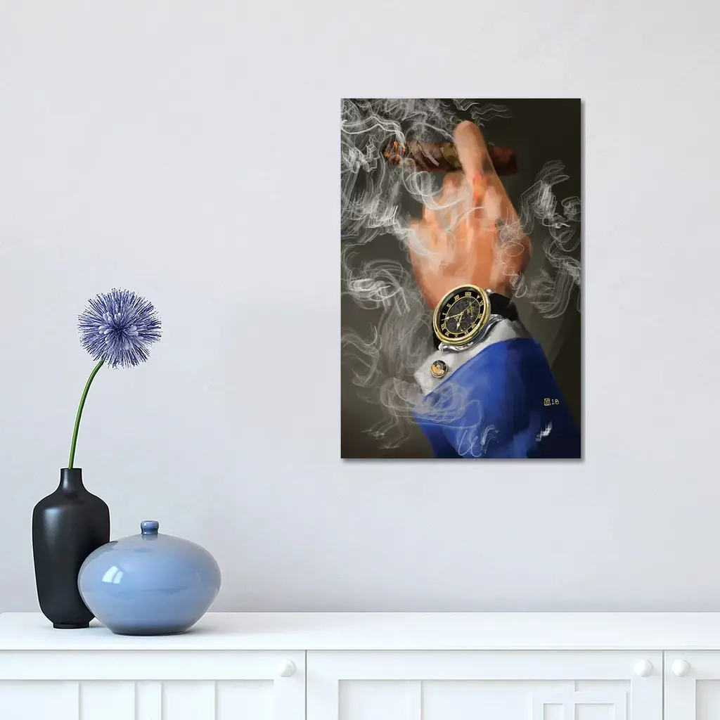 Looking for an eye-catching piece for your home? Look no further than the Man With Smoke Wall Art.