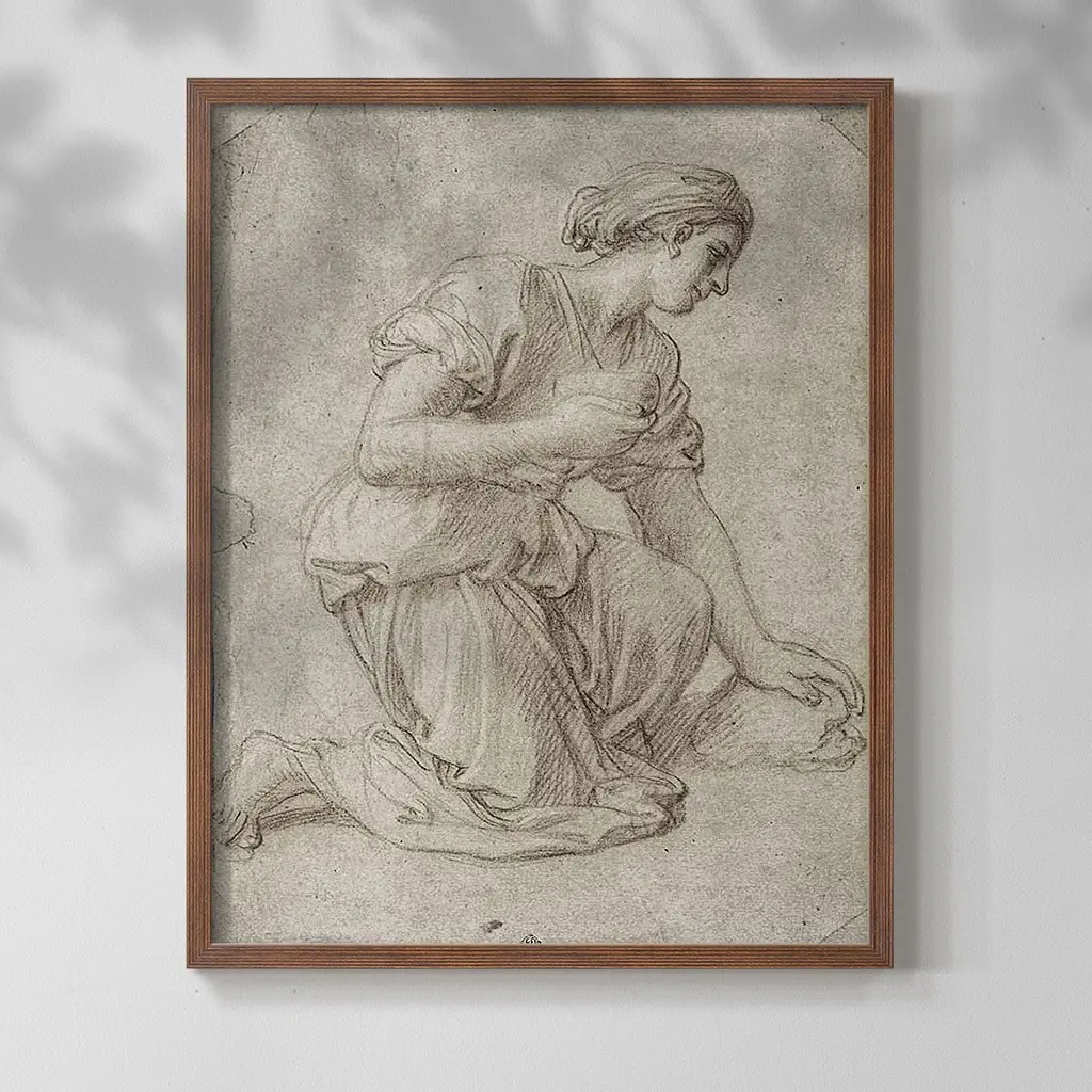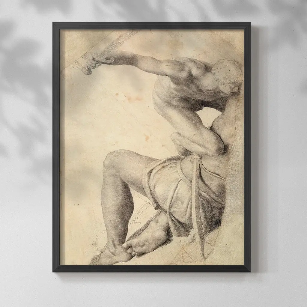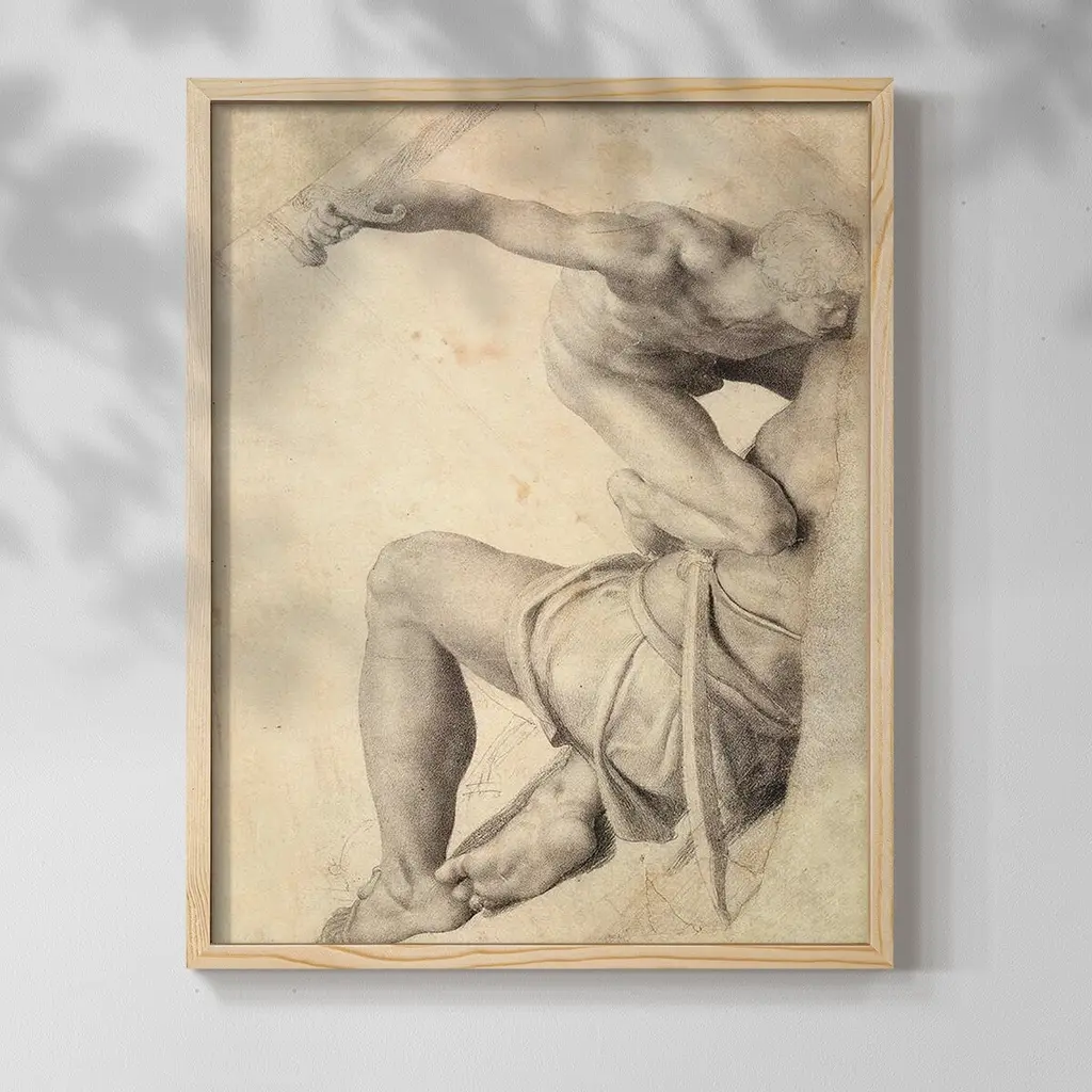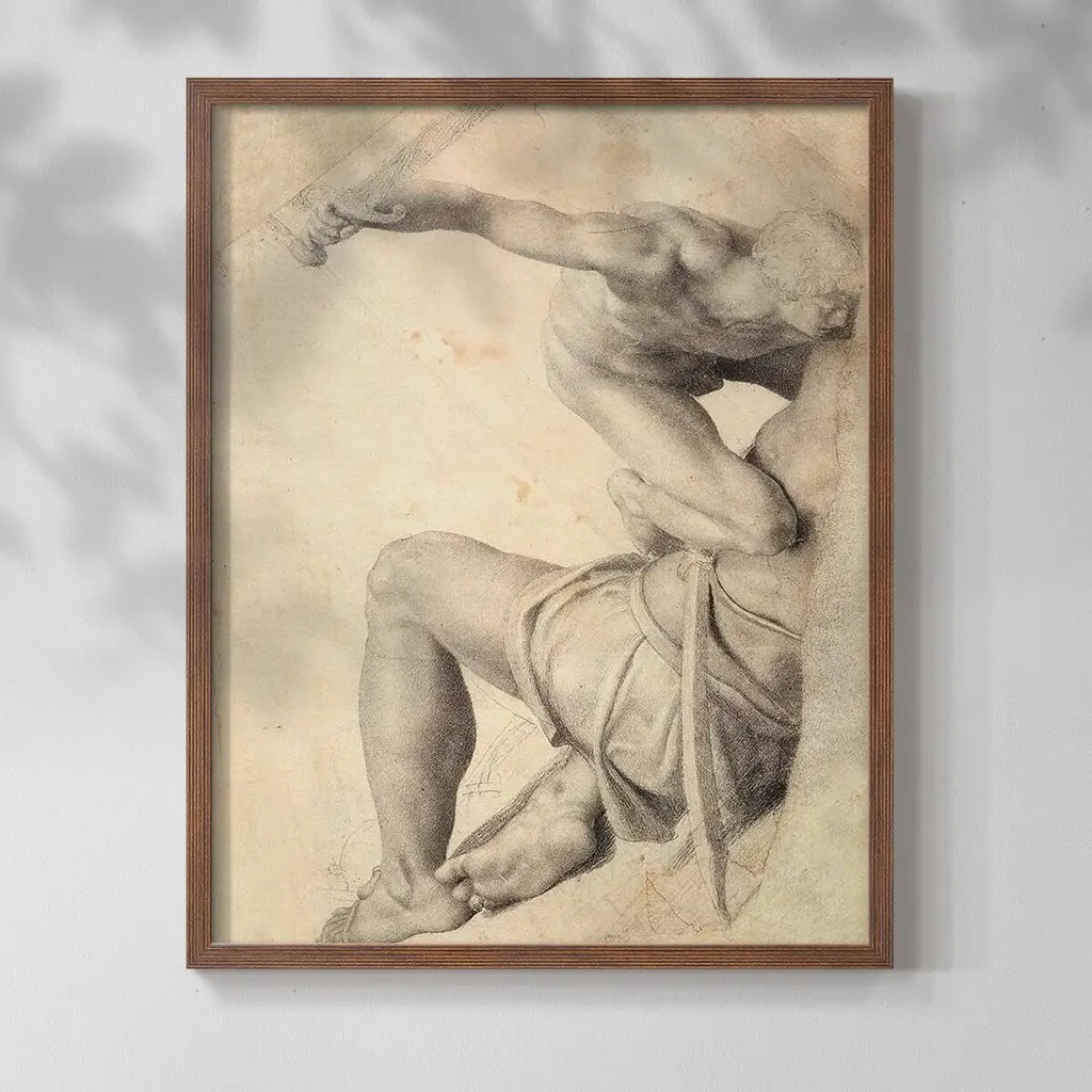 Designed by us and available only at One Kings Lane: This figure sketch of a man with his horse adds a classic note to your wall. Printed on deckled matte paper, matted, and displayed under glass in an antiqued gold frame, this piece arrives ready to hang.