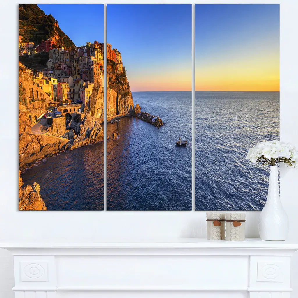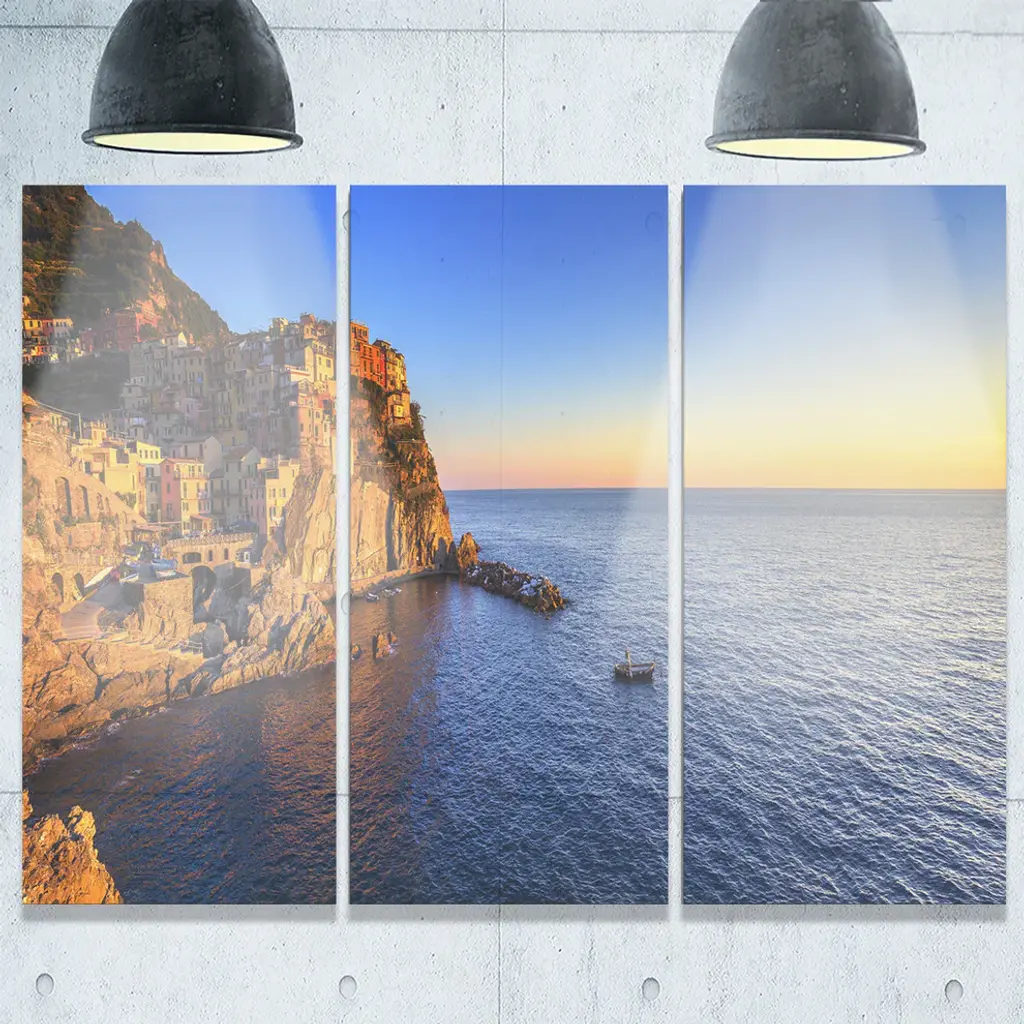 "Manarola Village Beach Panorama" Metal Wall Art, 3 Panels, 36"x28"