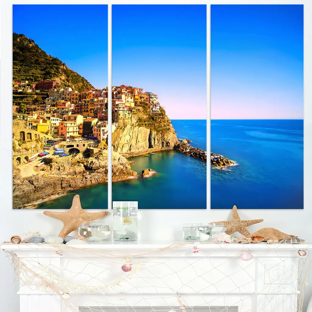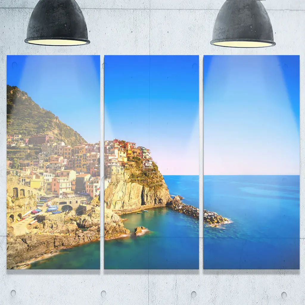 "Manarola Village Seashore Italy" Metal Wall Art, 3 Panels, 36"x28"