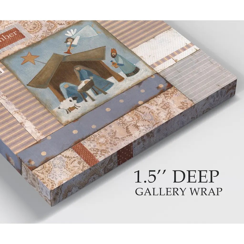 Manger Scene -Gallery Wrapped Canvas A premium hand strectched gallery wrapped canavas print created to last. Featuring a beveled a solid wood stretcher bar, each piece comes ready to hand 4 SIZES AVILABLE 10''X10'' - Overall Size 16''x16'' - Overall Size 24''x24'' - Overall Size 32''x32'' - Overall Size 40''x40'' - Overall Size Each piece is made to order. Built to Last Each piece comes ready to hang Solid wood strecher Fade and Water resitant Made domestically