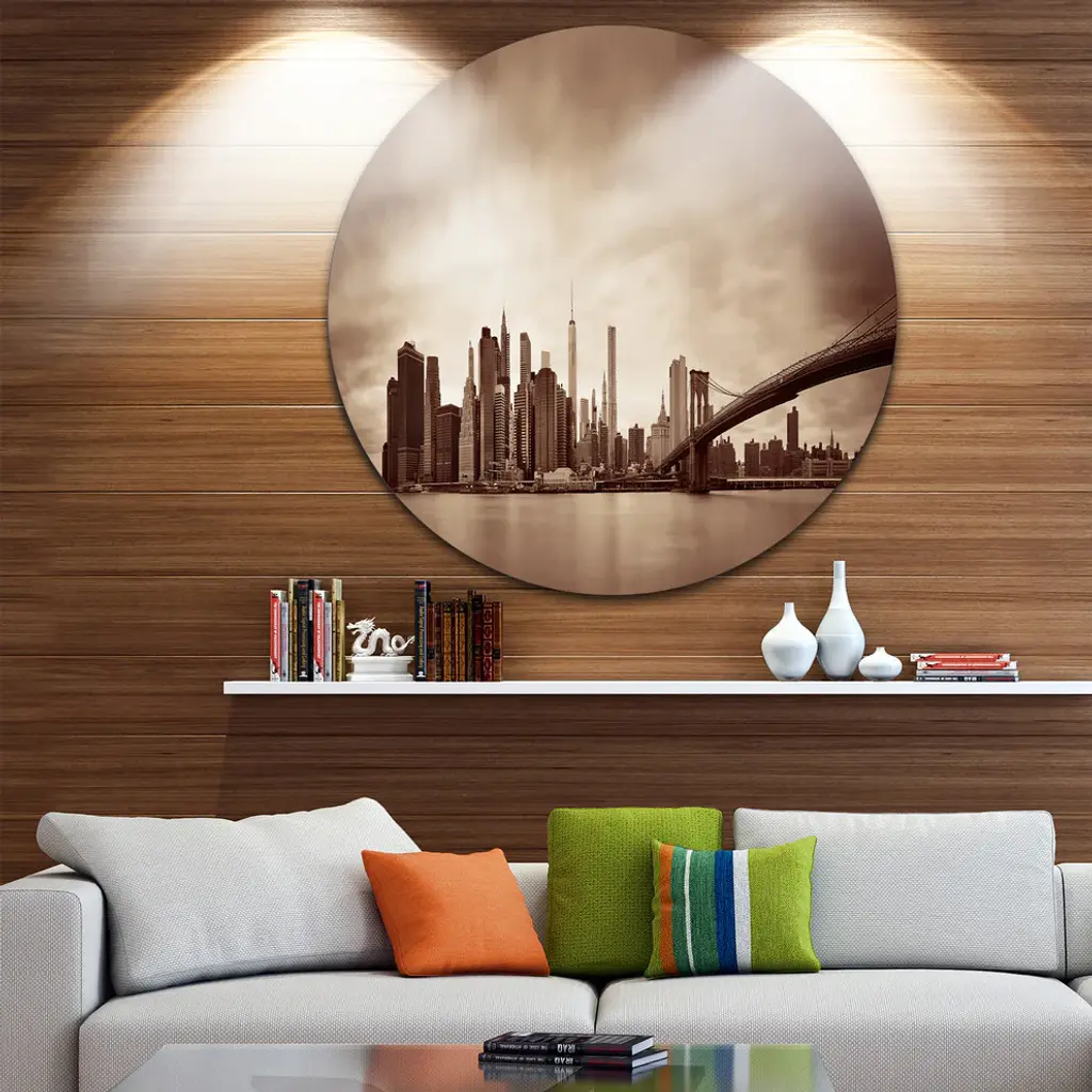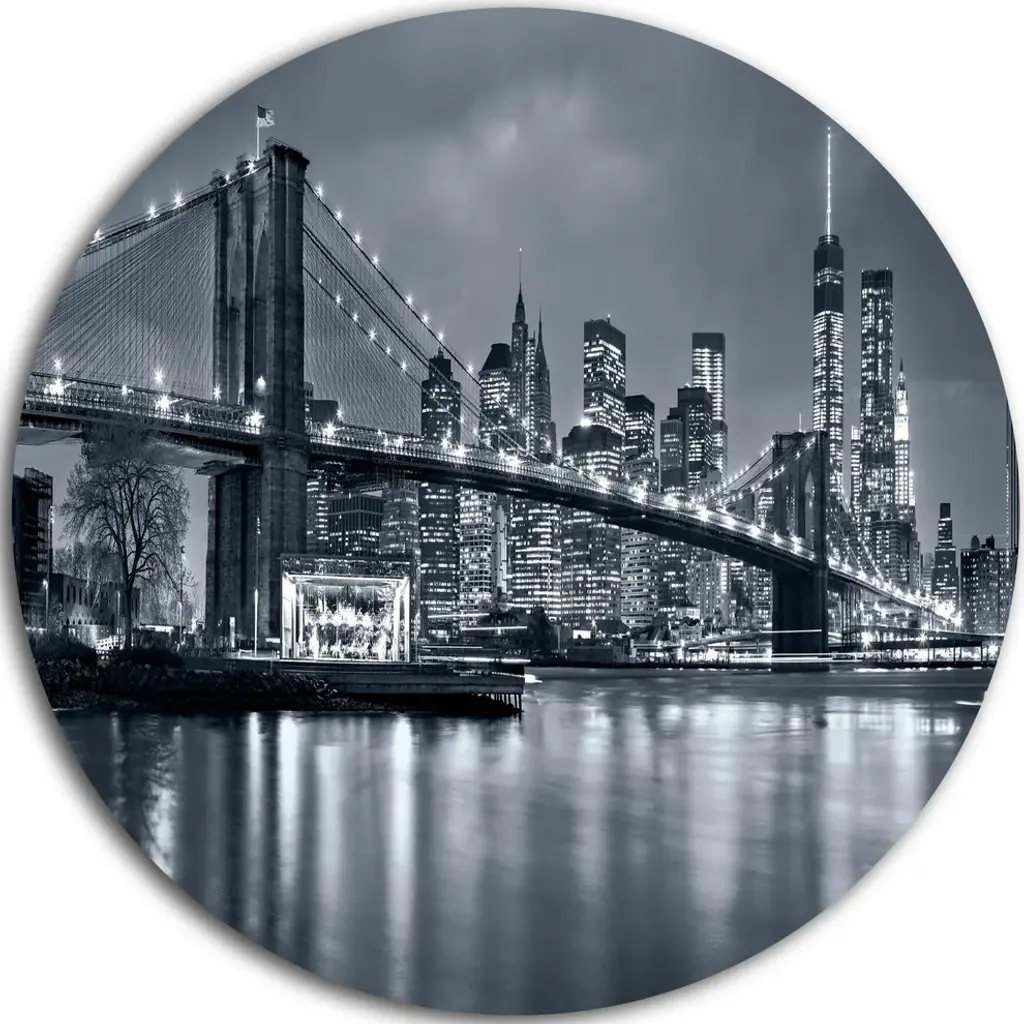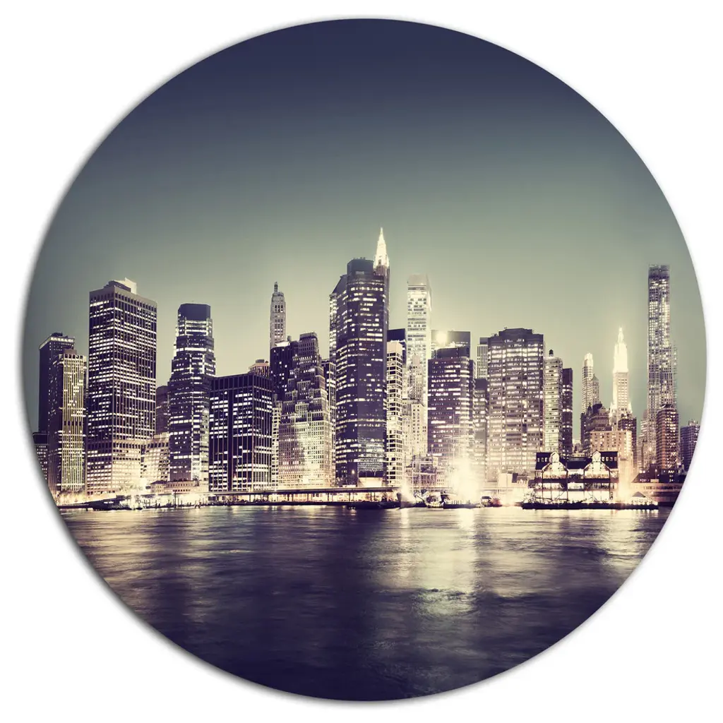Bring Contemporary Abstraction to your home with this large Circle Metal wall art. This Manhattan Financial District Metal Artwork makes it the focal point of any room or office. - White Gloss Coating ensures colors are extra vibrant with light reflection.- Aluminum grade Sheet Metal with 1 inch mounting frame on the back giving the illusion that the artwork is floating on the wall..- Mounting Brackets are included along with instructions.- High Quality Digital images are created directly into a glossy aluminum panel producing a stunning and captivating print into the glossy finish of the metal.- Water, Fire and Scratch resistant HD Aluminum panels.- Looks better than any photo paper and guaranteed to last at least 20 years- Easy to clean with a microfiber cloth. Colors are far superior to regular Canvas Art. - Easy to Hang