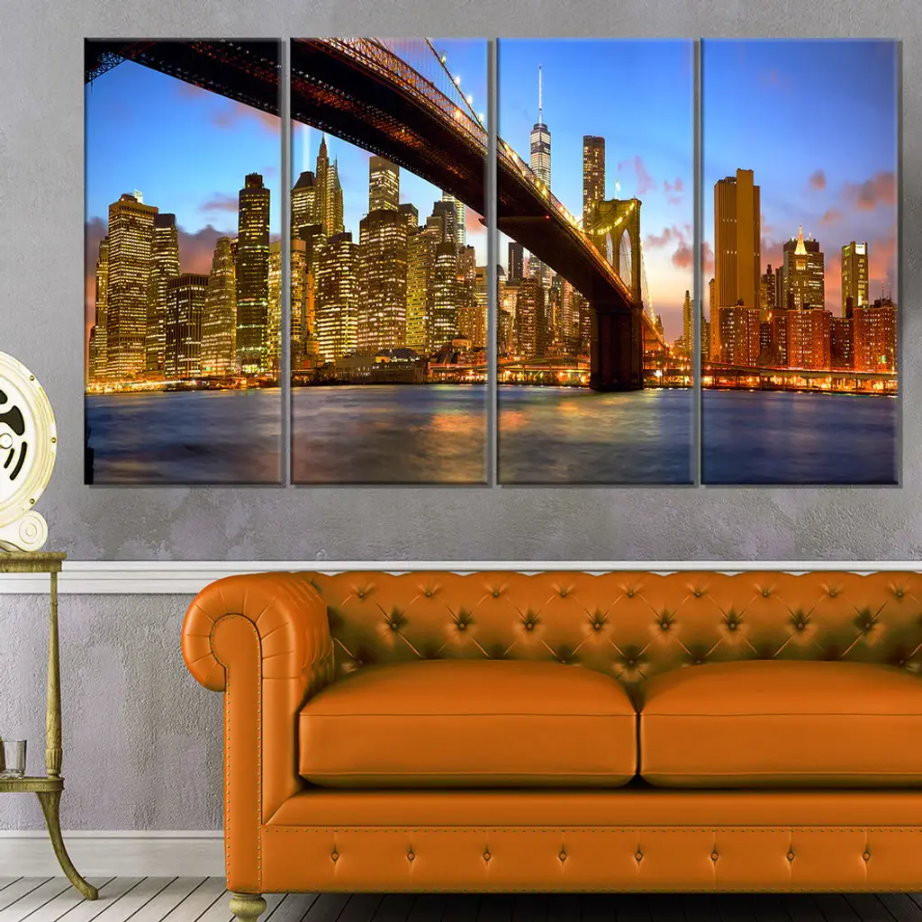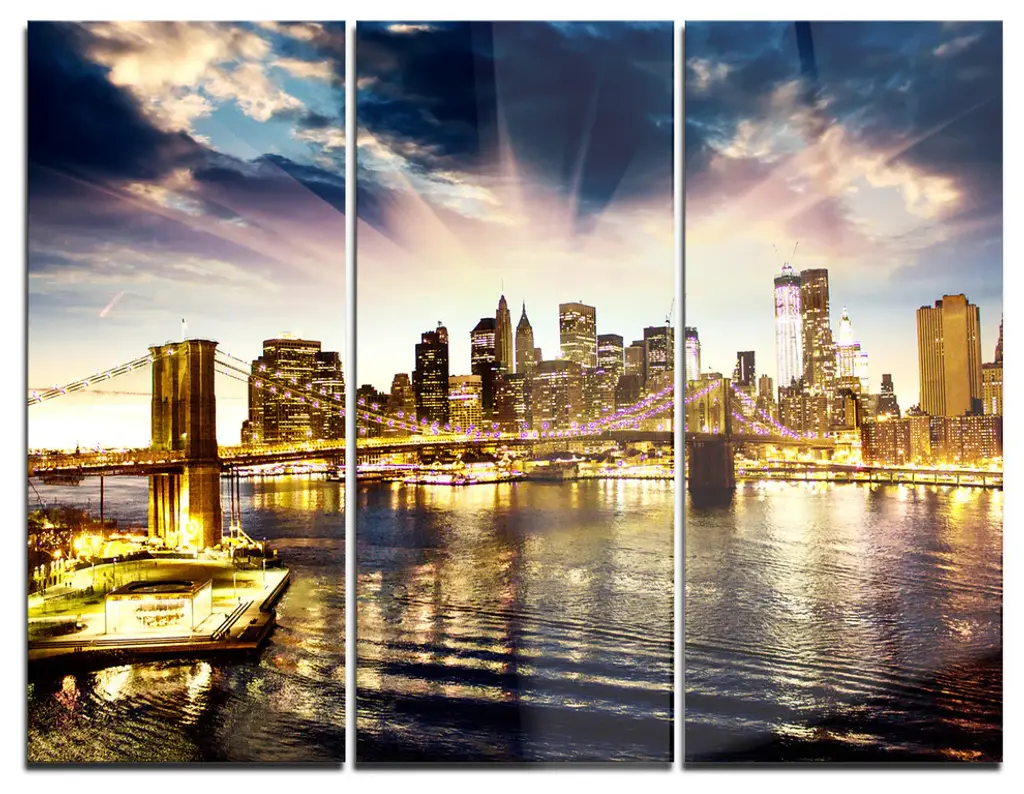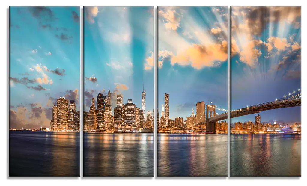 "Manhattan" Panorama With Skyscrapers" Canvas Print48"x28", 4-Panels