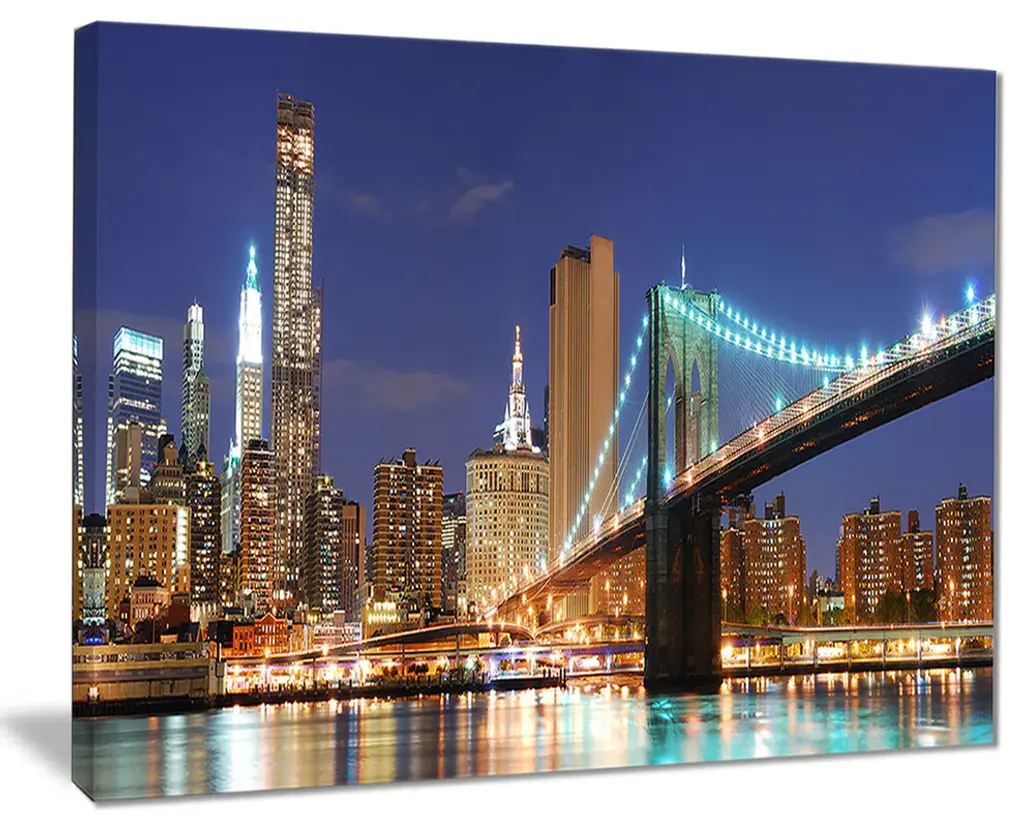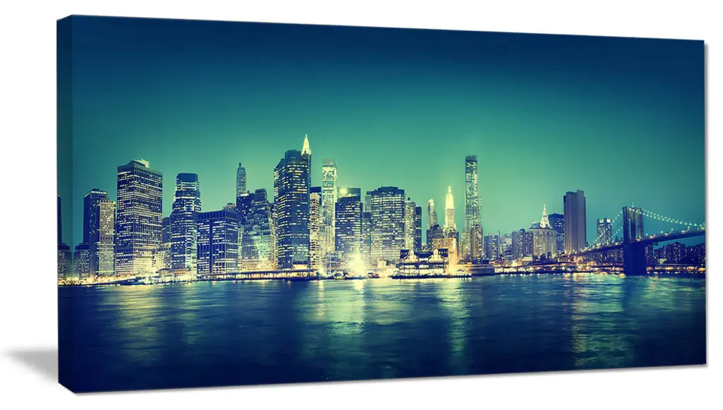 The Manhattan Panoramic Skyline View canvas art print is sure to make an impression on anyone who sees it. This artwork is gallery wrapped around a 1-inch solid wood frame and arrives carefully packaged and entirely ready to hang on the wall. Design Art only uses the highest resolution and pigments to ensure a crisp colorful print that is never faded or pixelated. This artwork is sure to be a conversation starter in any home or office.