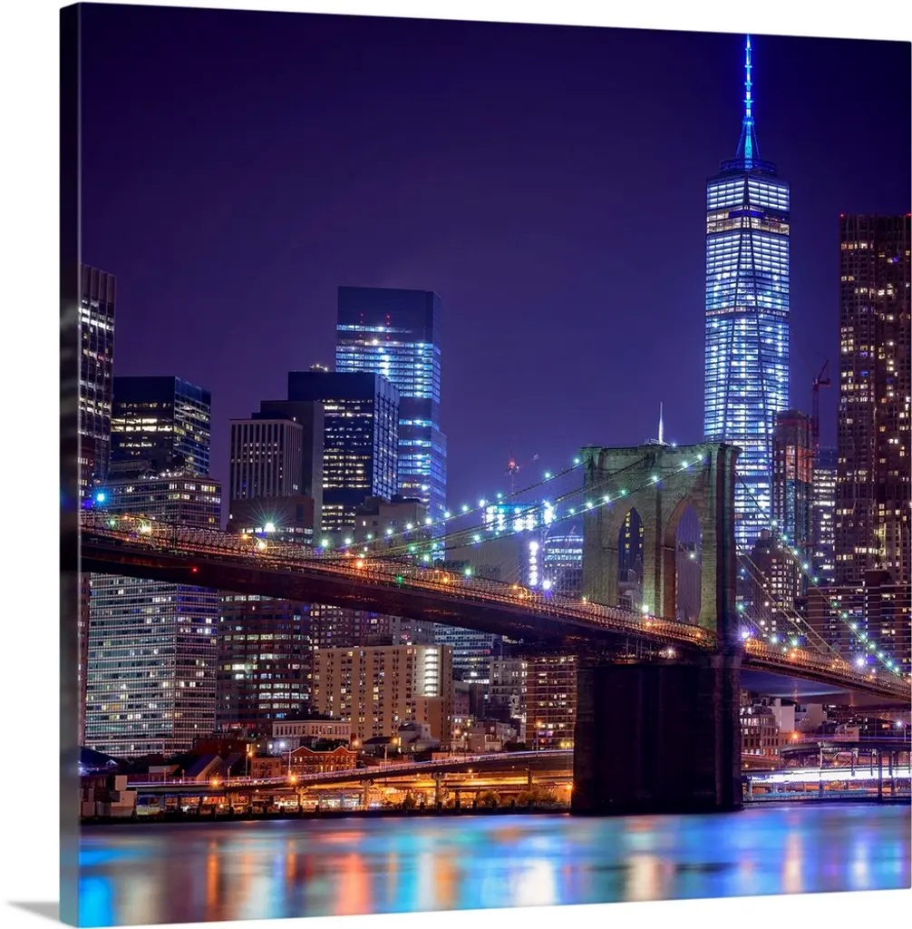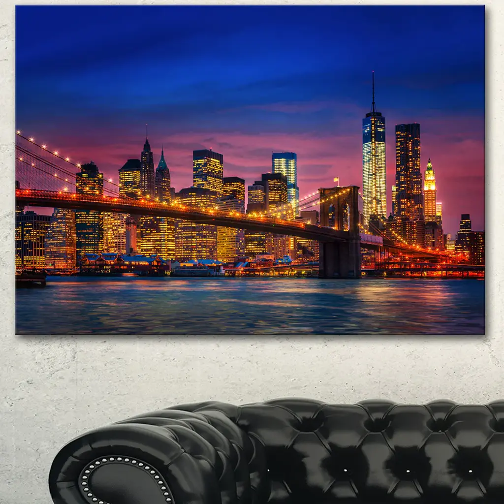 Manhattan With Lights And Reflections, Extra Large Canvas Art Print, 60"x28"