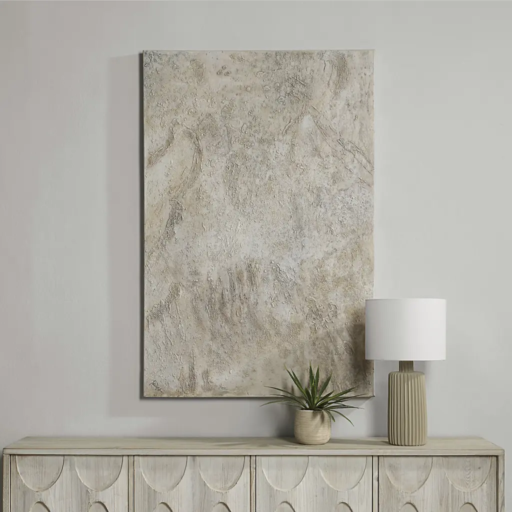 Bring an art gallery feel to any interior with the stunning Mann abstract art painting. A vision in neutral shades of cream and grey, this 100% hand-painted canvas is the perfect addition to many styles of decorating, from traditional to modern and everything in between. Elevating the allure of any home or commercial space, this large-scale wall art features a beautifully textured finish thanks to a unique sand gel painted technique that creates drama and visual interest. Offering hanging flexibility that allows you to feature it vertically or horizontally to best suit the space, its poised for maximum impact in any room.