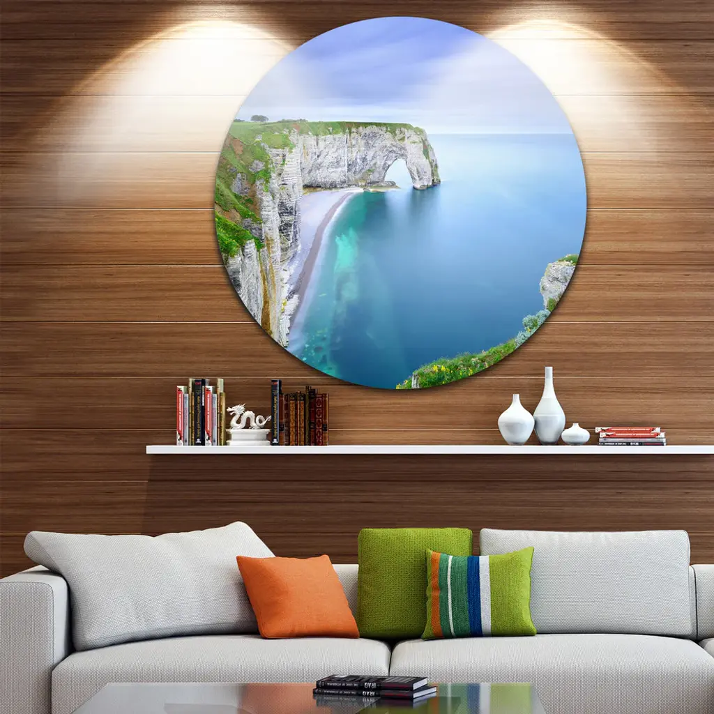 Manneporte Natural Rock Arch, Seashore Photo Round Metal Wall Art, 23"