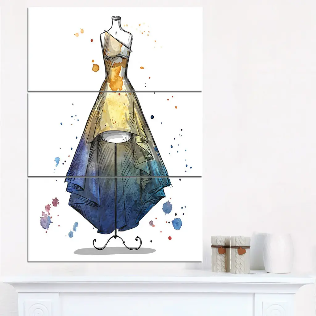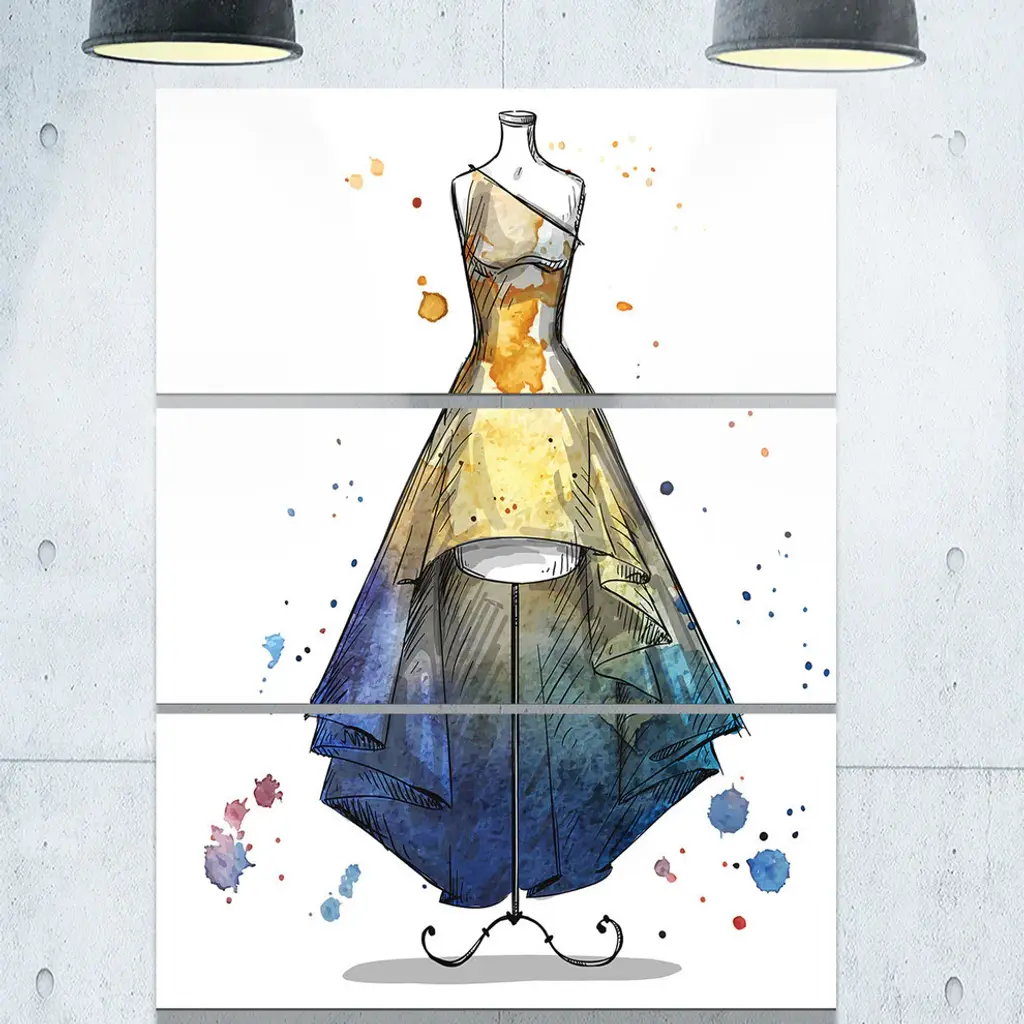 "Mannequin With Long Dress" Digital Glossy Metal Wall Art, 3 Panels, 28"x36"