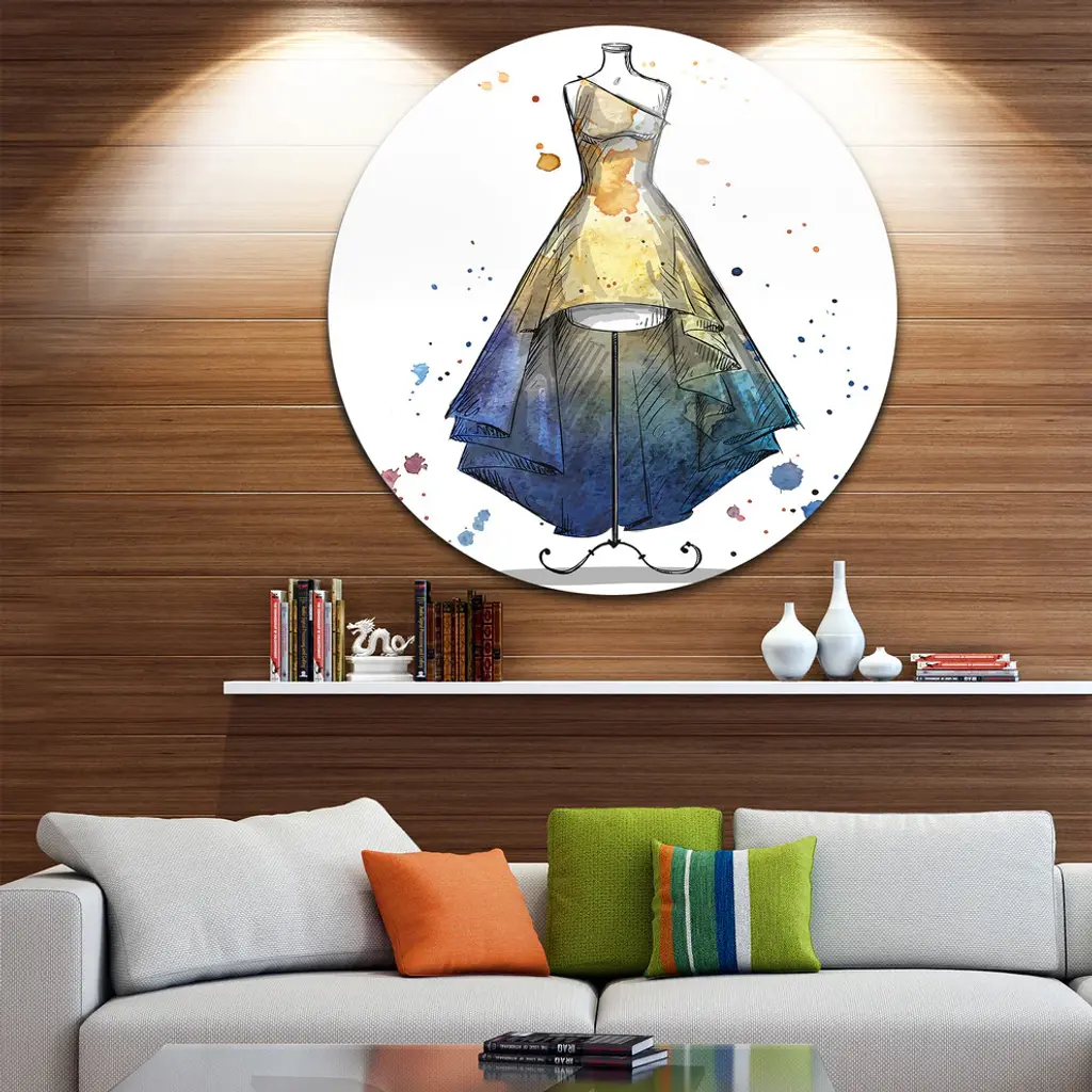 Mannequin With Long Dress, Digital Round Metal Wall Art, 11"
