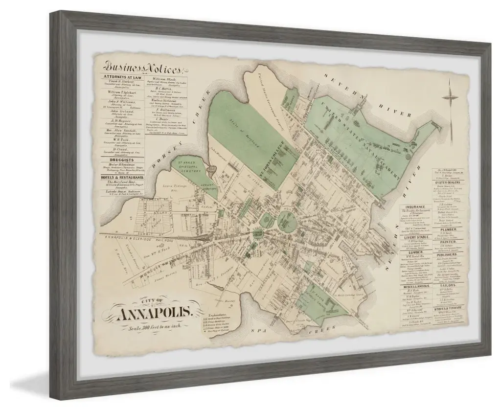 "Map Of Annapolis" Framed Painting Print, 30x20